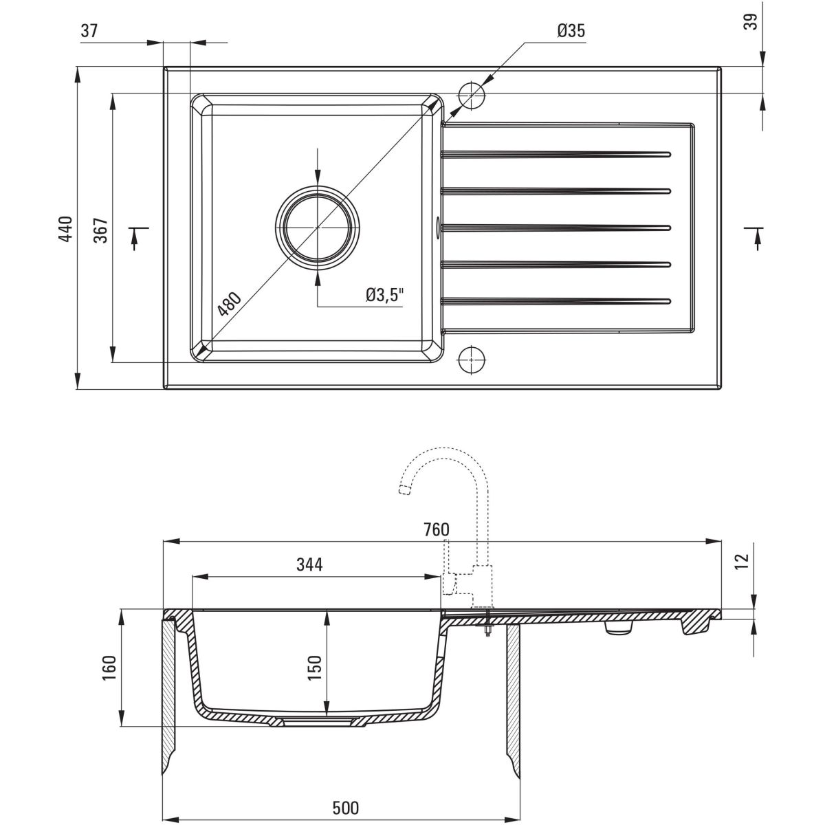 - Abflussdurchmesser: 3,5"