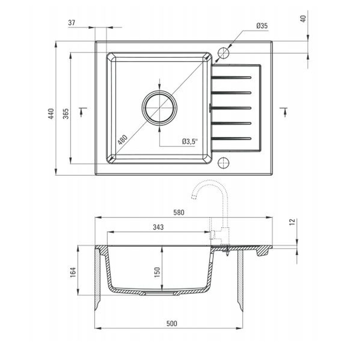 - Anzahl der Spülbecken: 1