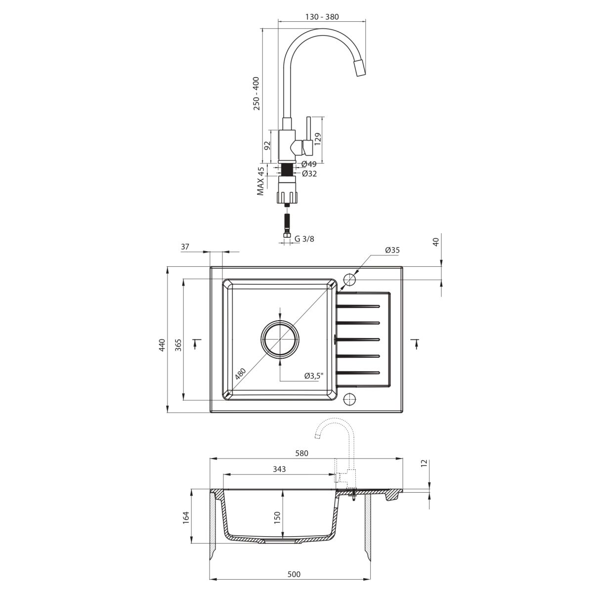 - Abflussdurchmesser: 3,5''