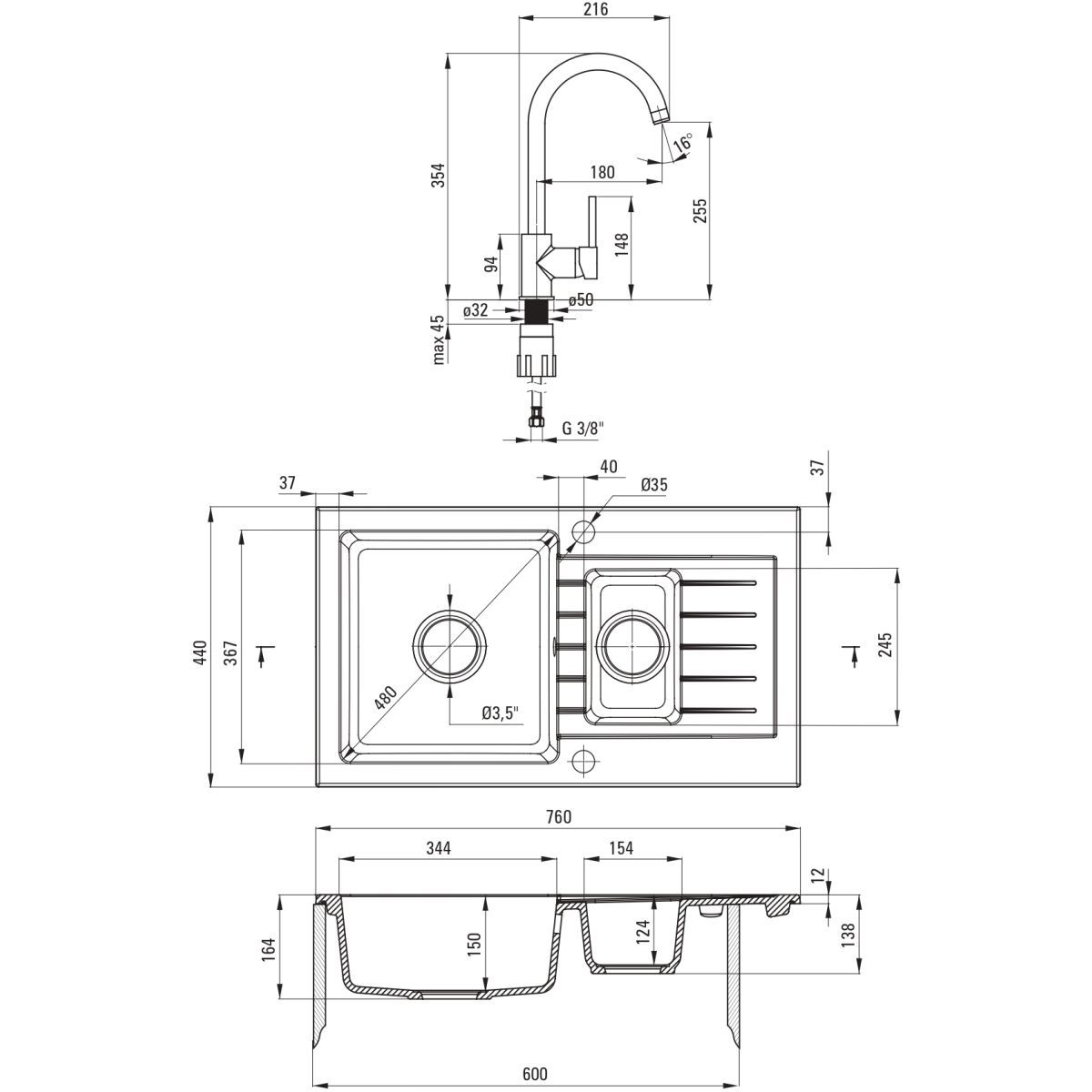 - Anzahl der Spülbecken: 1,5