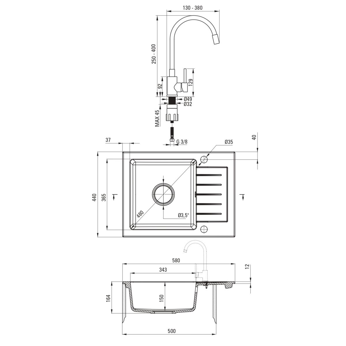Die Granitspüle Zorba mit eleganter Armatur ist das perfekte Set für Ihre Küche. Die Spüle aus strapazierfähigem Granit verfügt über ein geräumiges Becken und einen kurzen Abtropfbereich. Die aus hochwertigem Granit gefertigte Spüle bietet alle Vorteile dieses besonders langlebigen und widerstandsfähigen Materials. Sie ist beständig gegen Verfärbungen, Kratzer, Temperaturschocks und Stöße. Darüber hinaus ist ihre Oberfläche wasserabweisend, was die Reinigung des Produkts erleichtert. Die Armatur verfügt über einen flexiblen Auslauf, der bei der Arbeit in der Küche sehr praktisch ist. Darüber hinaus ist sie mit einem Belüfter ausgestattet, der den Wasserstrahl mit Luft anreichert.