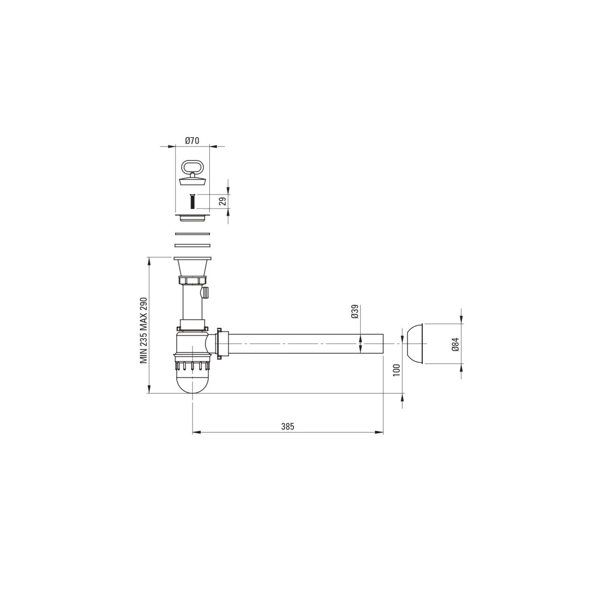 - Typ: Spülbeckensiphon