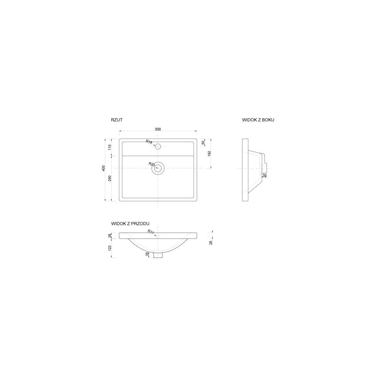 Defra Barcelona Waschbecken 50x40 cm rechteckig Möbel weiß 2420