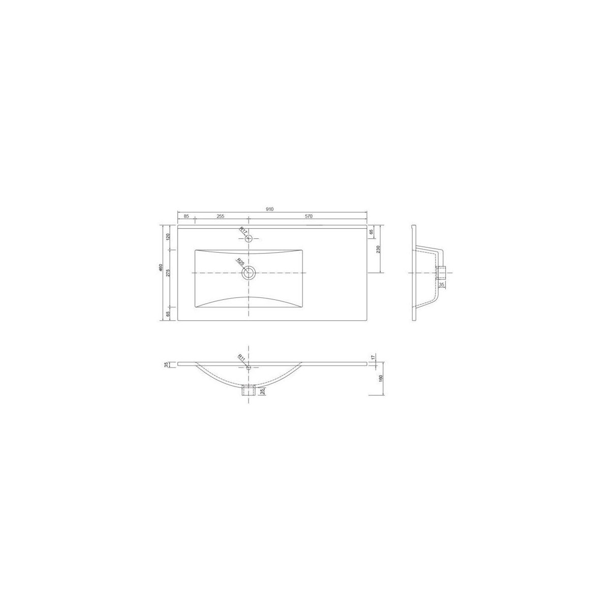 Defra Plan Waschbecken 91x46 cm rechteckig Möbel weiß 1725