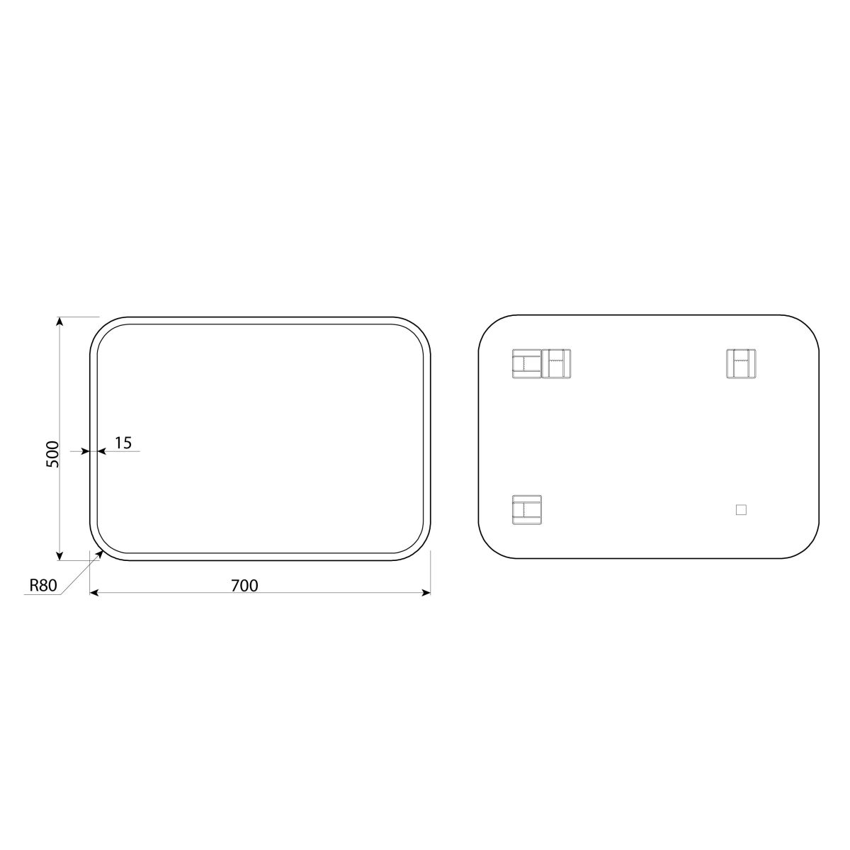 - rechteckiger Spiegel mit abgerundeten Ecken, rundum abgeschrägt