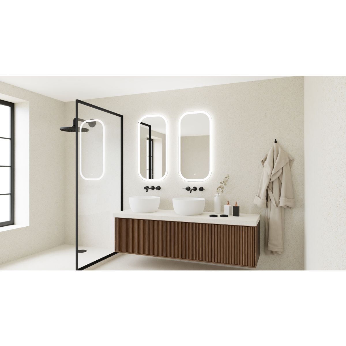 - Spiegel mit LED-beleuchtetem Rand
