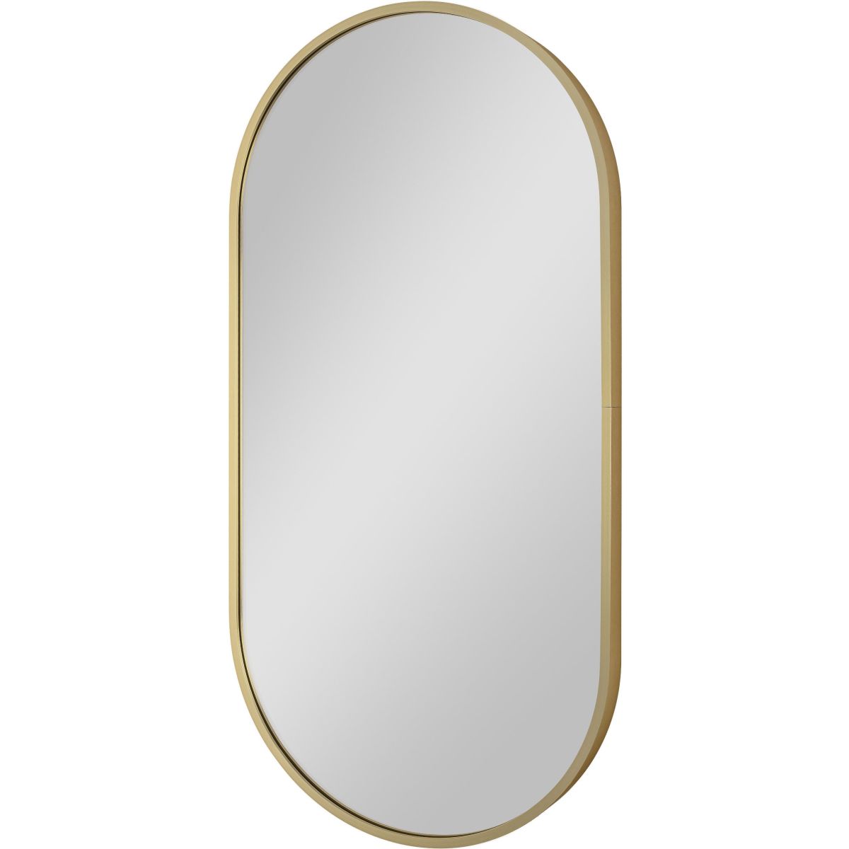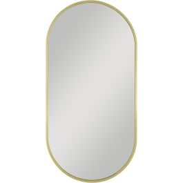 Ovaler Spiegel in einem goldenen Rahmen aus gebürstetem Aluminium. Rahmentiefe: 4 cm. Der Spiegel kann vertikal oder horizontal aufgehängt werden.