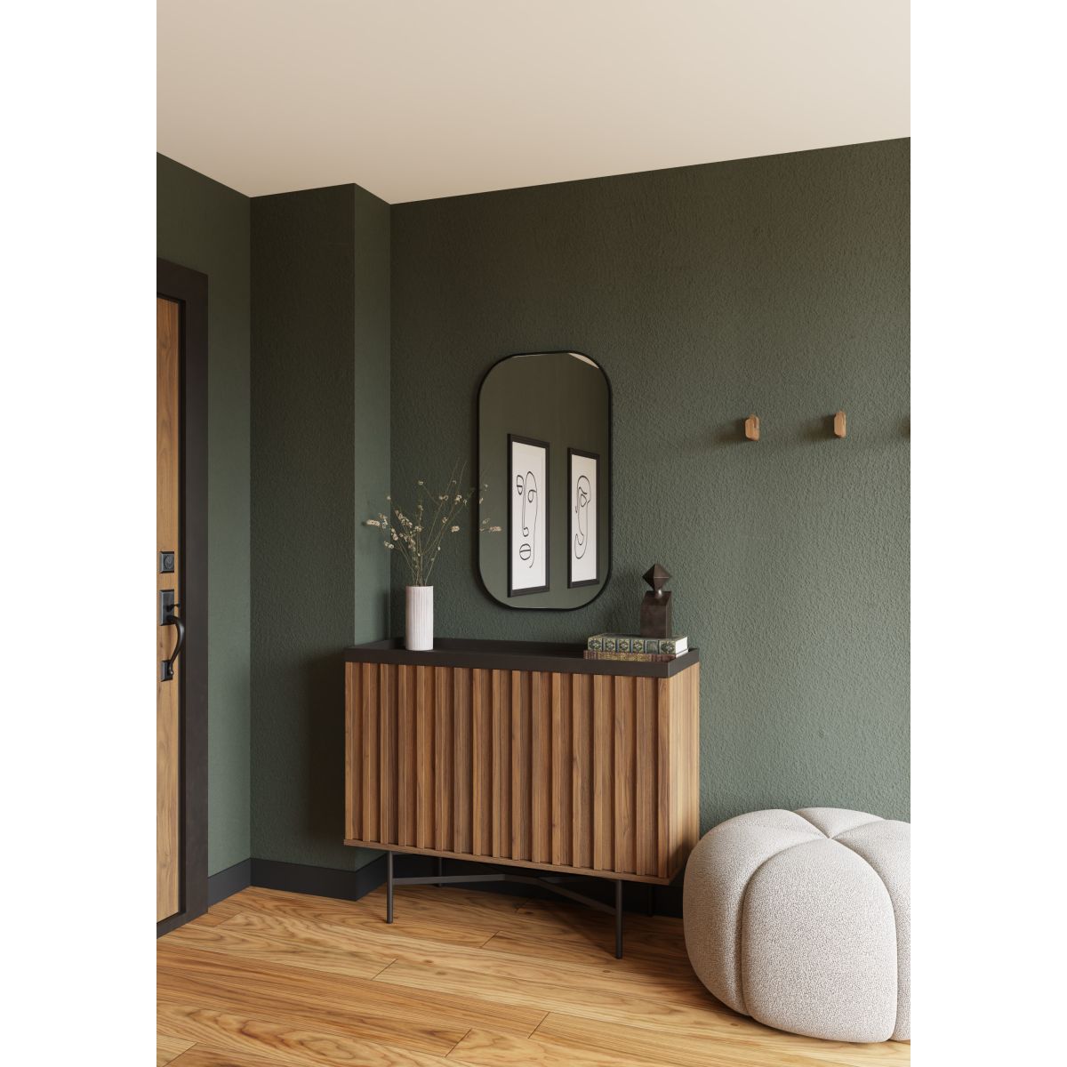 - ovaler Spiegel in schwarzem Rahmen aus gebürstetem Aluminium