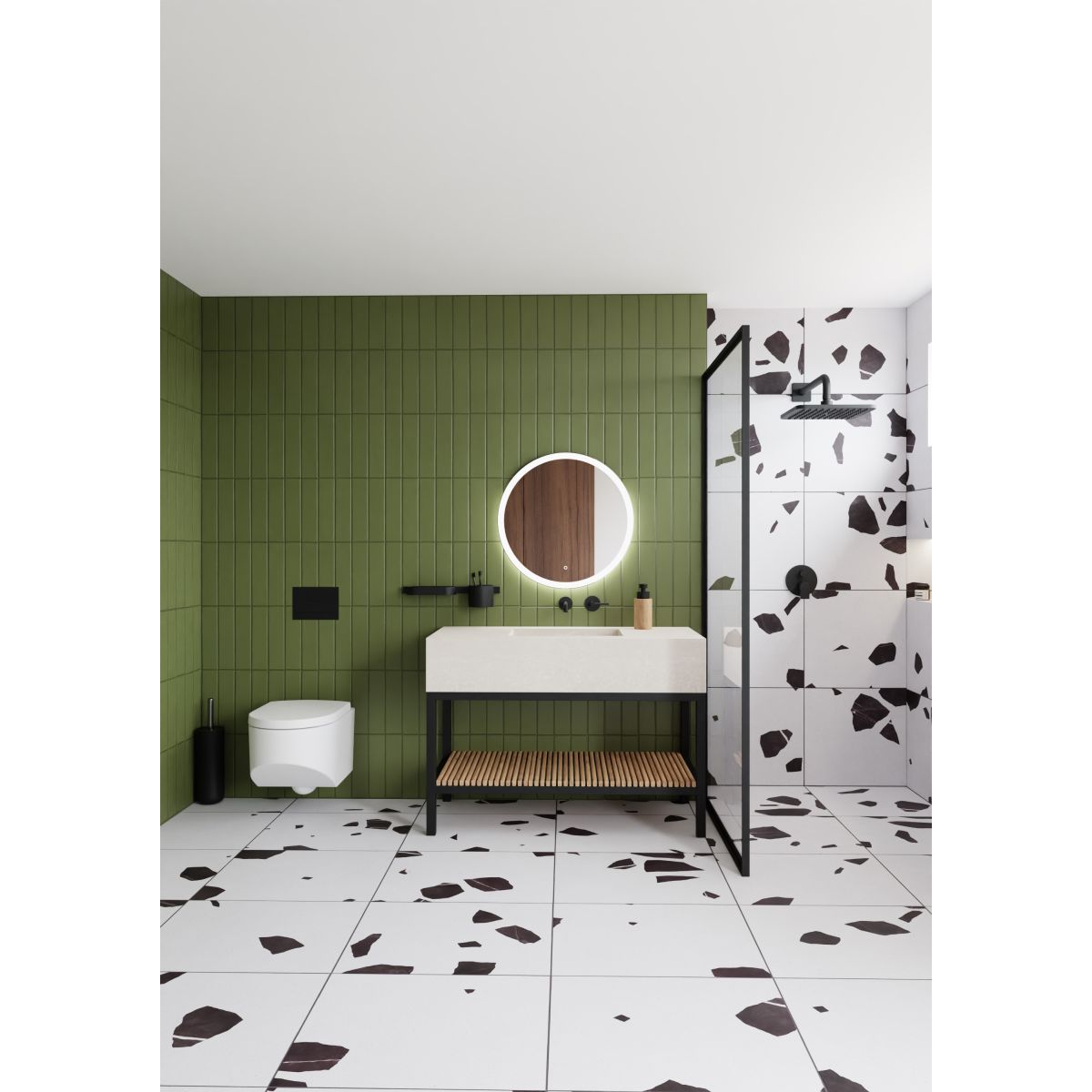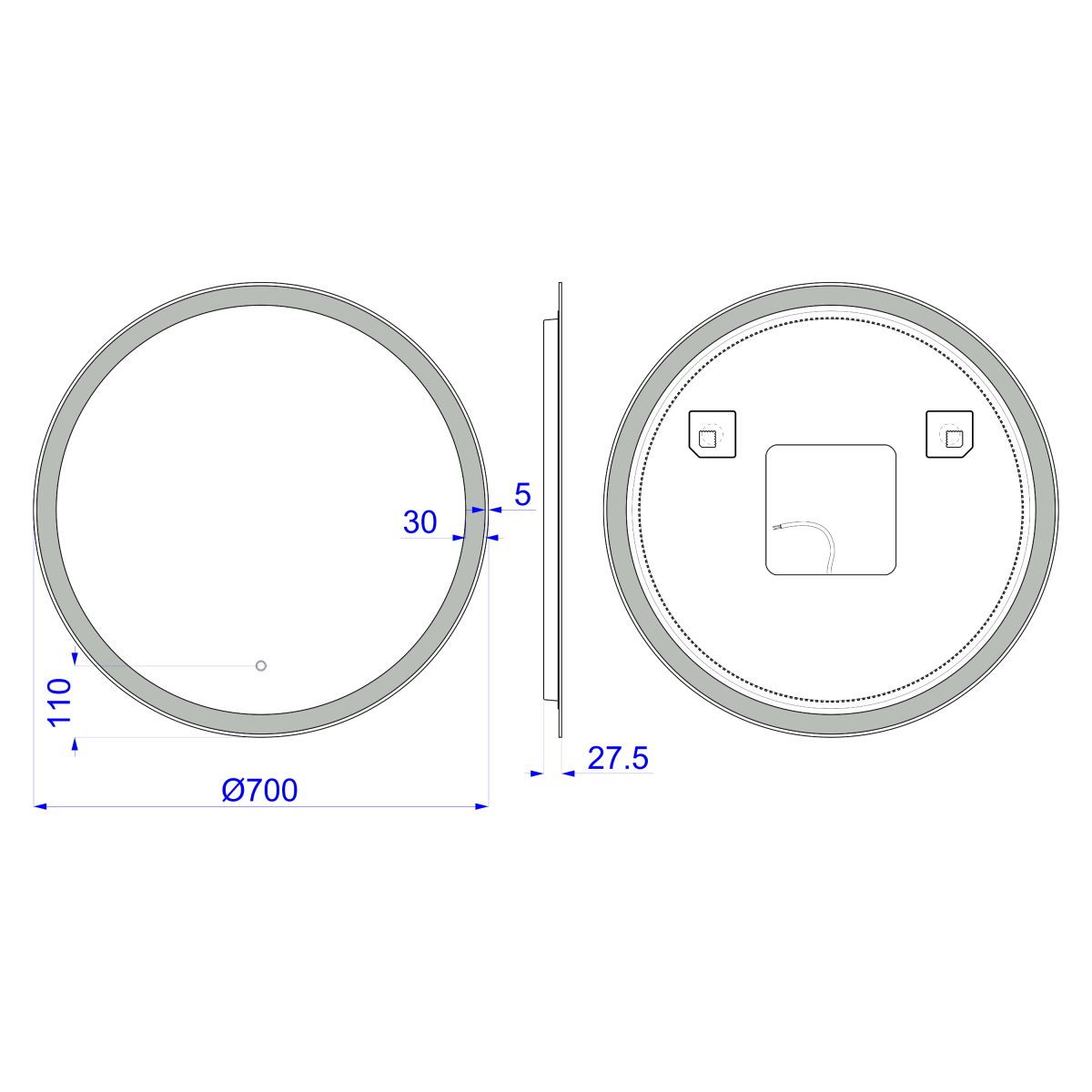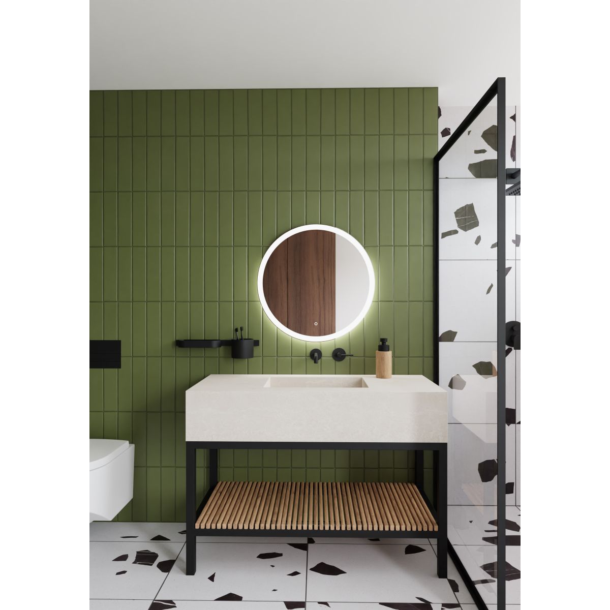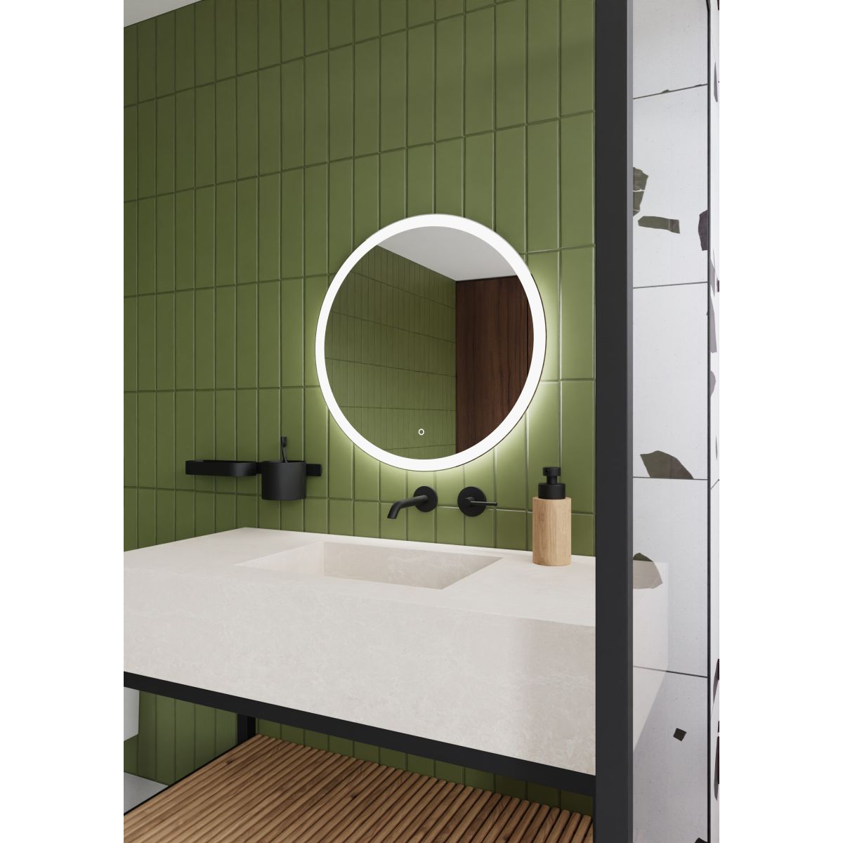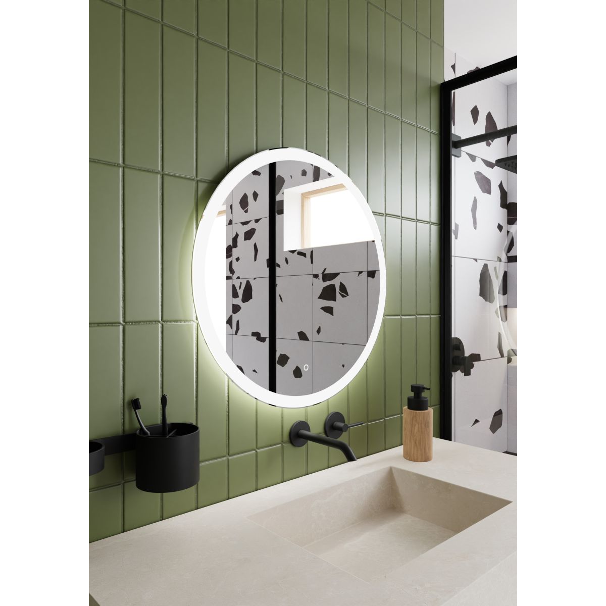 - runder Spiegel mit LED-beleuchtetem Rand