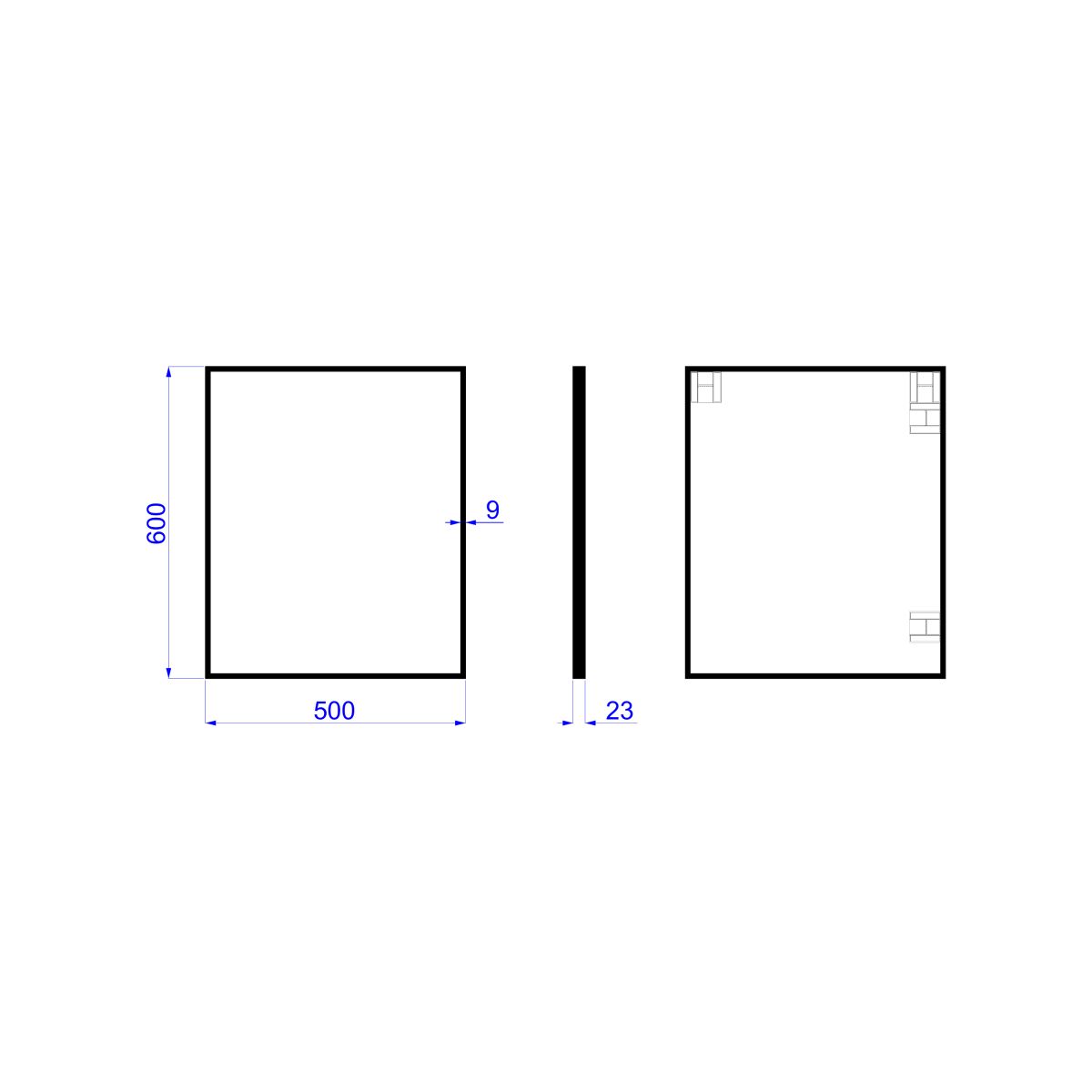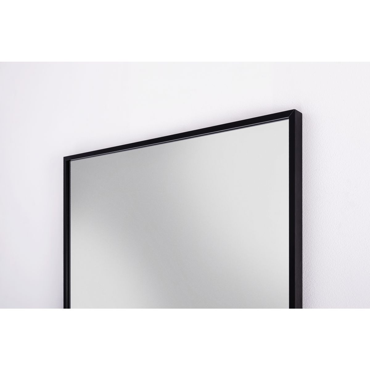 Rechteckiger Spiegel in einem schwarzen Rahmen aus gebürstetem Aluminium. Rahmentiefe – 2,3 cm. Der Spiegel kann vertikal oder horizontal aufgehängt werden.