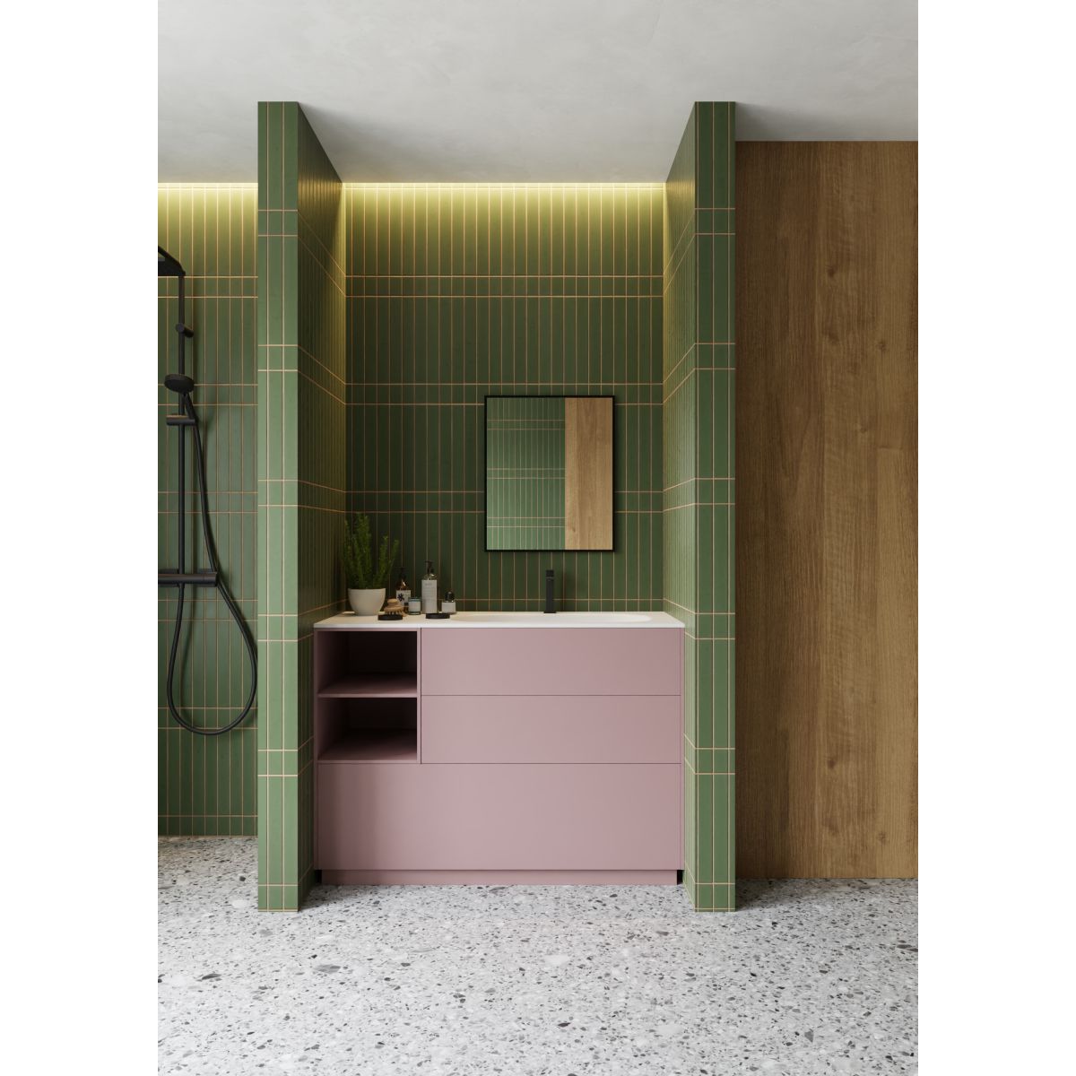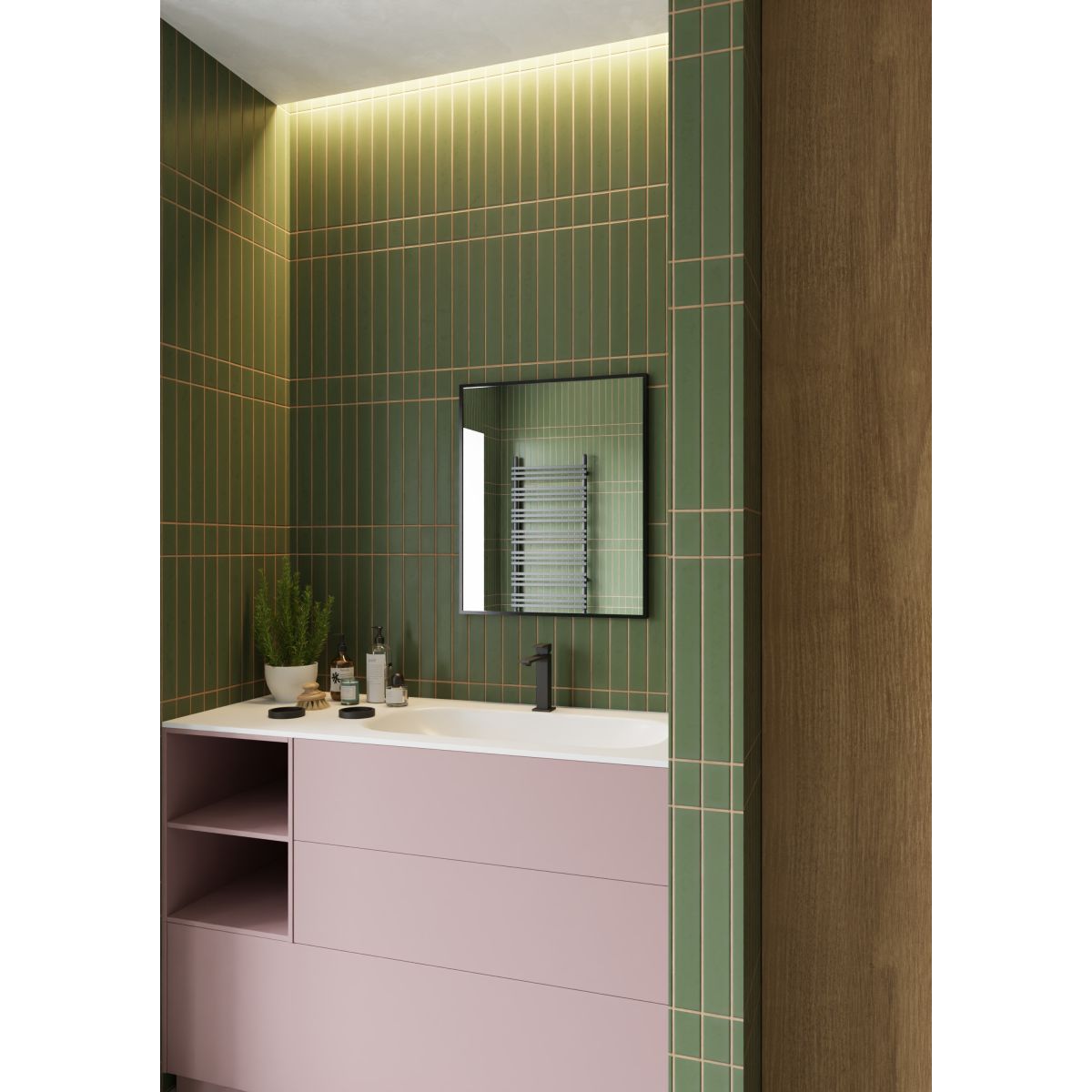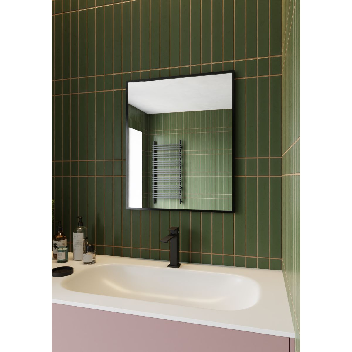 Rechteckiger Spiegel in einem schwarzen Rahmen aus gebürstetem Aluminium. Rahmentiefe – 2,3 cm. Der Spiegel kann vertikal oder horizontal aufgehängt werden.