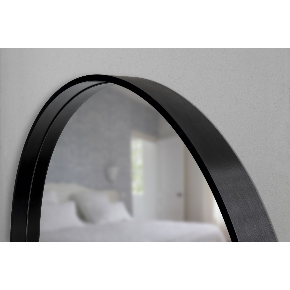 - Rundspiegel in schwarzem Rahmen aus gebürstetem Aluminium