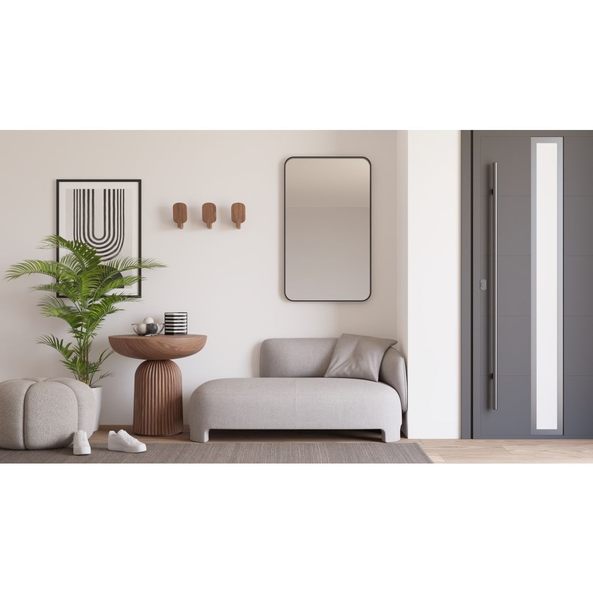 - Spiegel in einem schwarzen Rahmen aus gebürstetem Aluminium