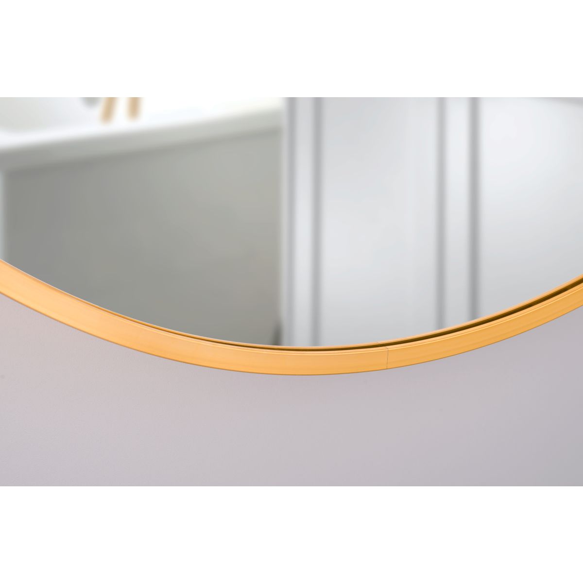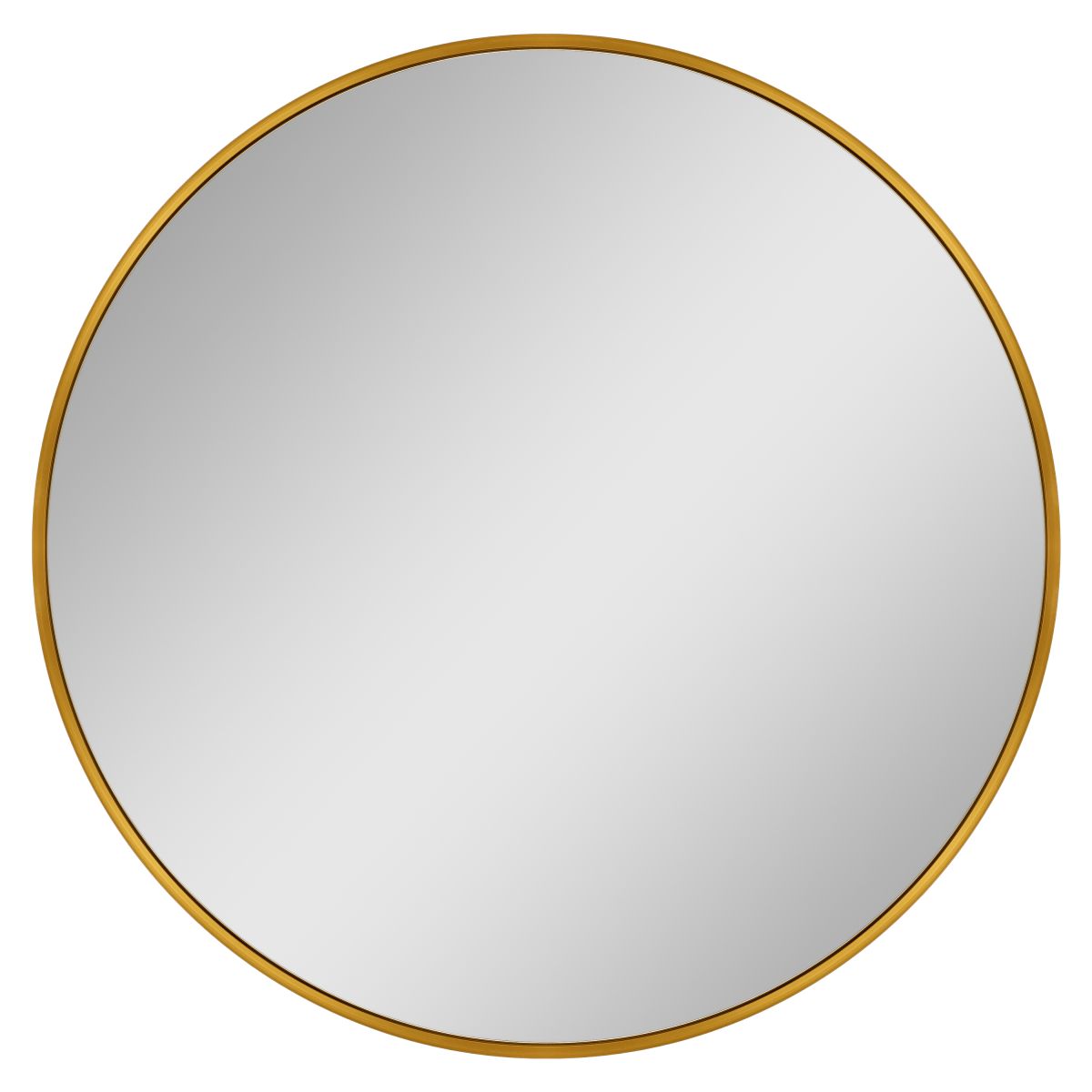 Runder Spiegel in einem goldenen Rahmen aus gebürstetem Aluminium. Rahmentiefe: 4 cm.