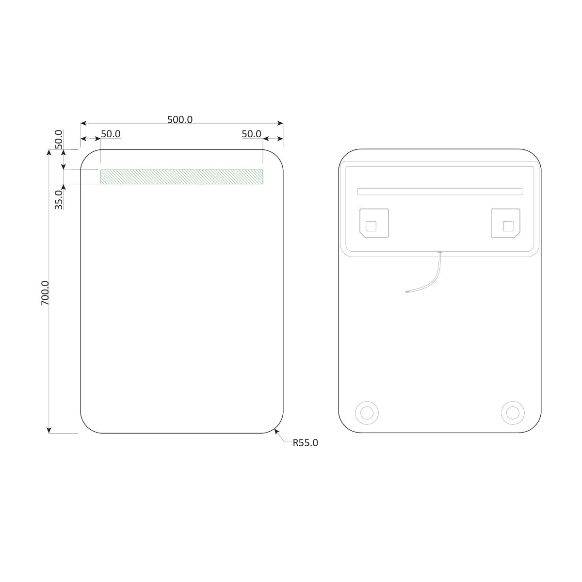 - rechteckiger Spiegel mit abgerundeten Ecken