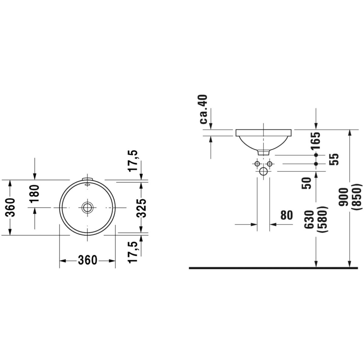 Duravit Architec Waschbecken 32.5x32.5 cm rund Unterbauwaschbecken weiß 0319320000