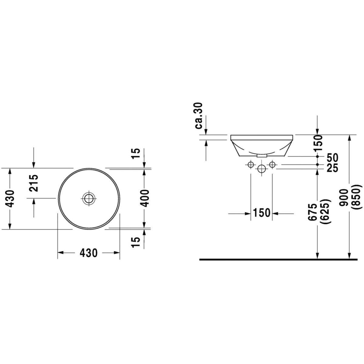 Duravit Architec Waschbecken 40x40 cm rund Unterbauwaschbecken weiß 0463400000
