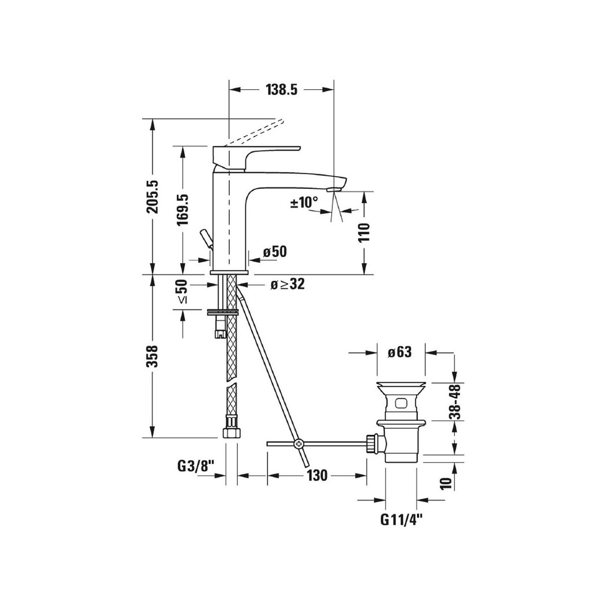 - Einstellbarer Perlator ermöglicht eine individuelle Einstellung des Wasserstrahlwinkels mit einer Genauigkeit von +/-10º
