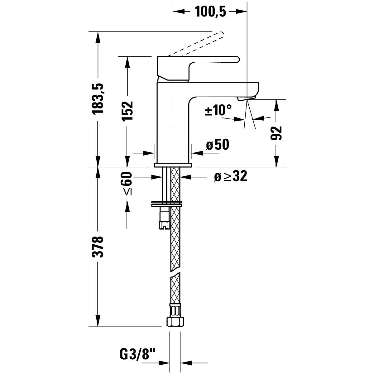 - Schlauchanschlussmaße: 3/8"