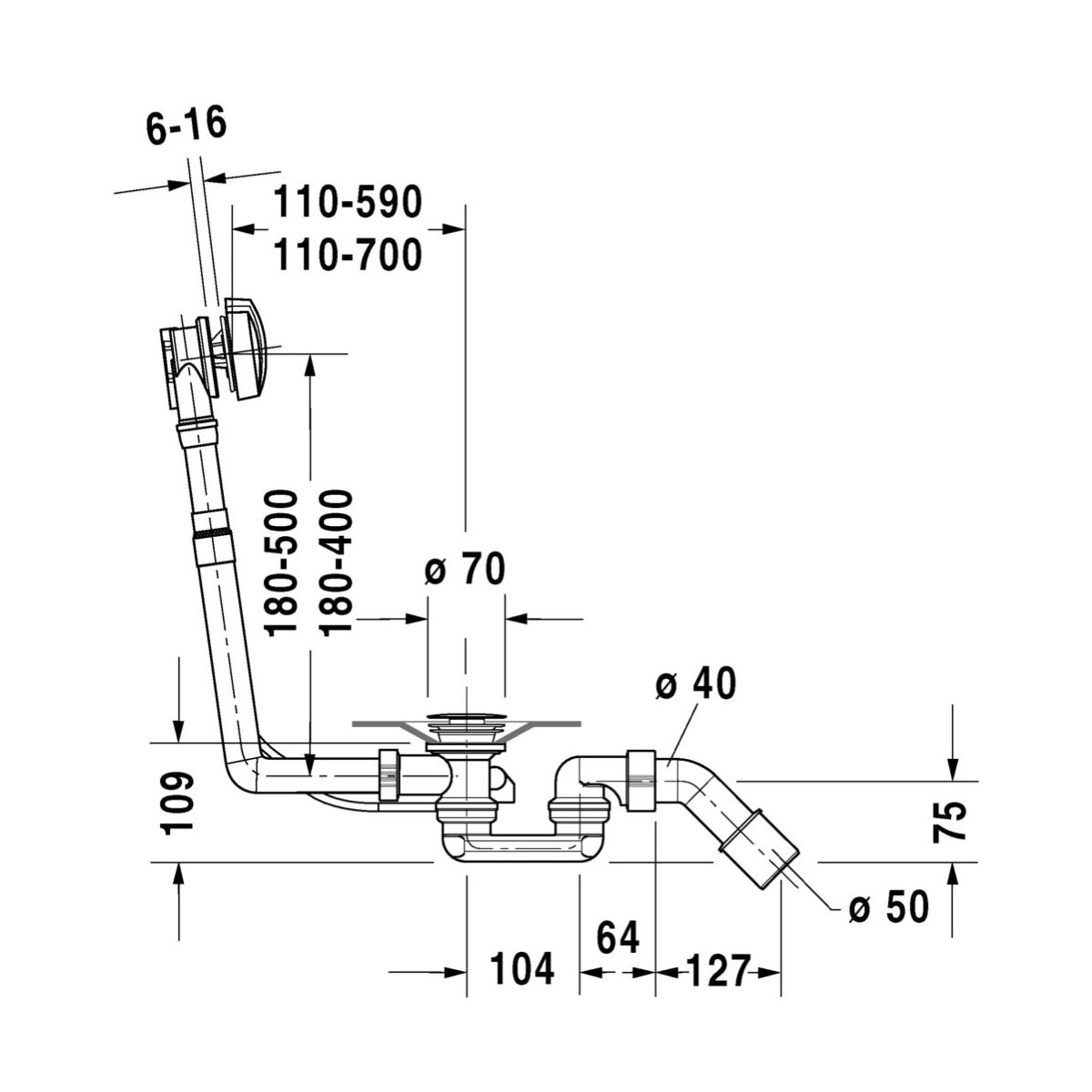 - für D-Code-Badewannen mit zentralem Abfluss