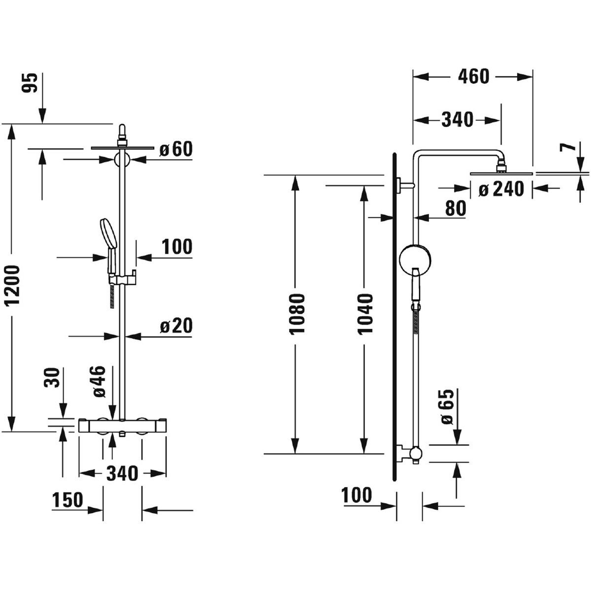 Duravit C.1 Duschset Wandmontage mit Thermostat mit Regenbrause chrom C14280008010