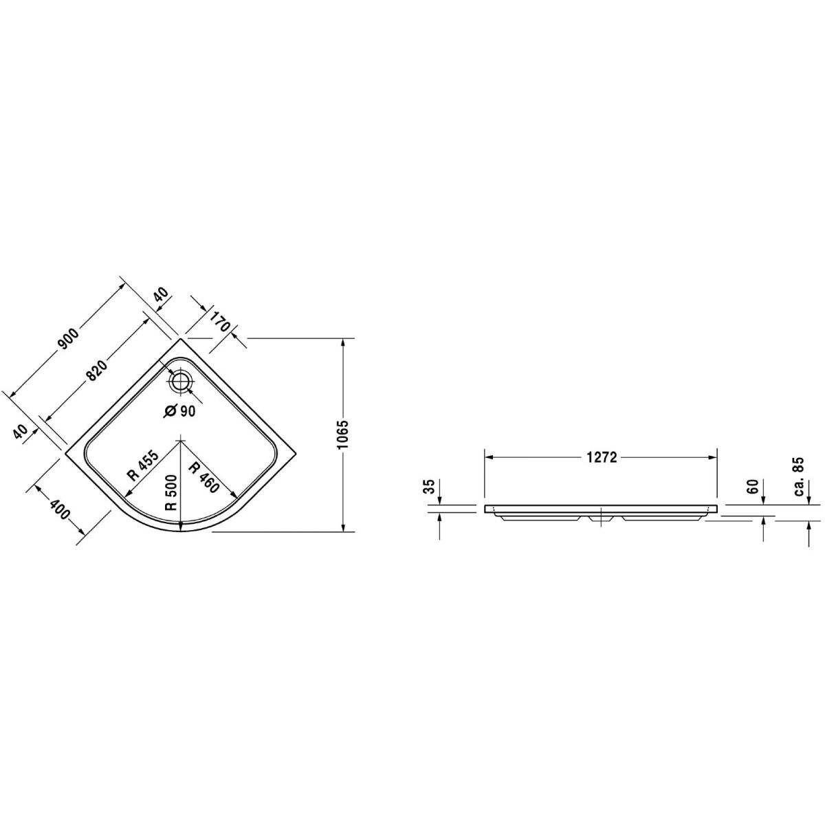 Duravit D-Code Halbrunde Duschwanne 90x90 cm weiß 720108000000001