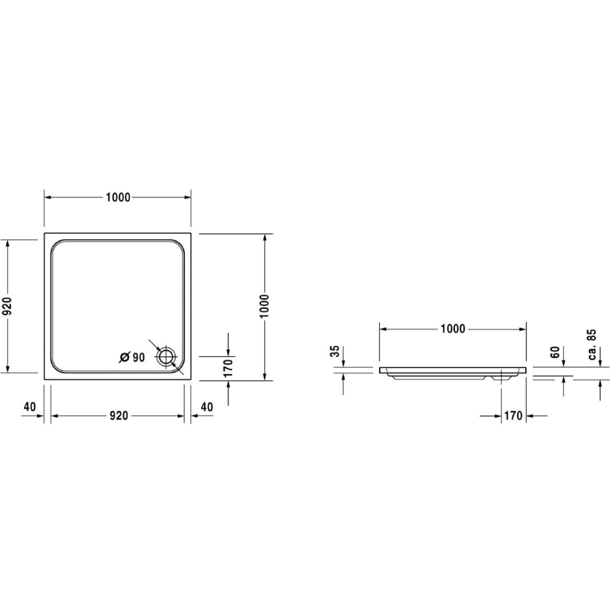 - Abflussdurchmesser: Ø 90 mm
