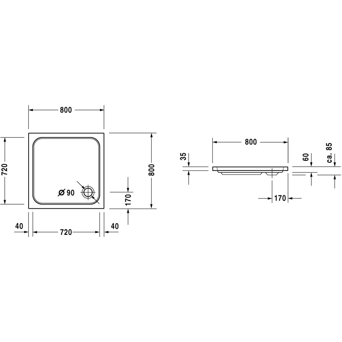Duravit D-Code Quadratische Duschwanne 80x80 cm weiß 720101000000001