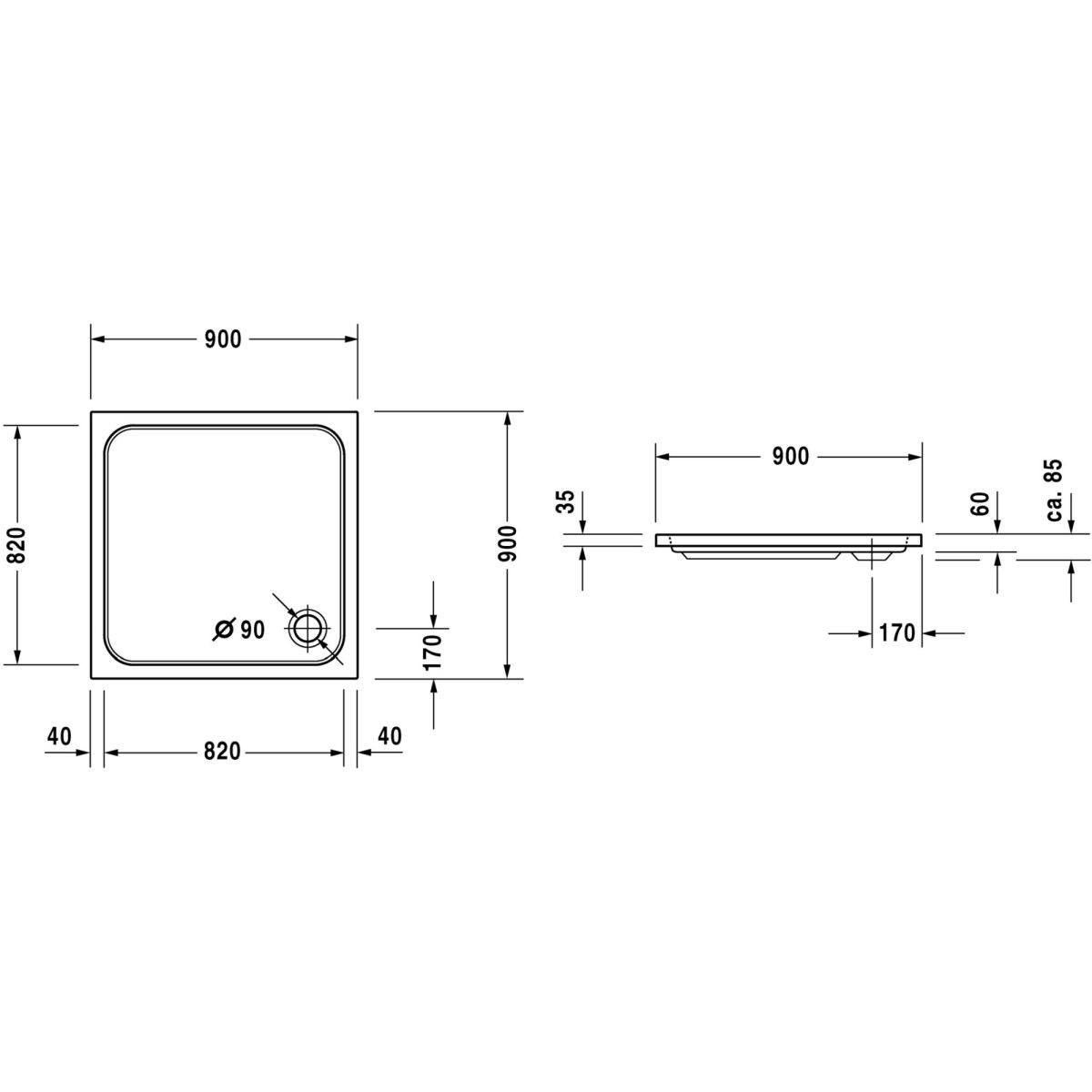 Duravit D-Code Quadratische Duschwanne 90x90 cm weiß 720102000000001