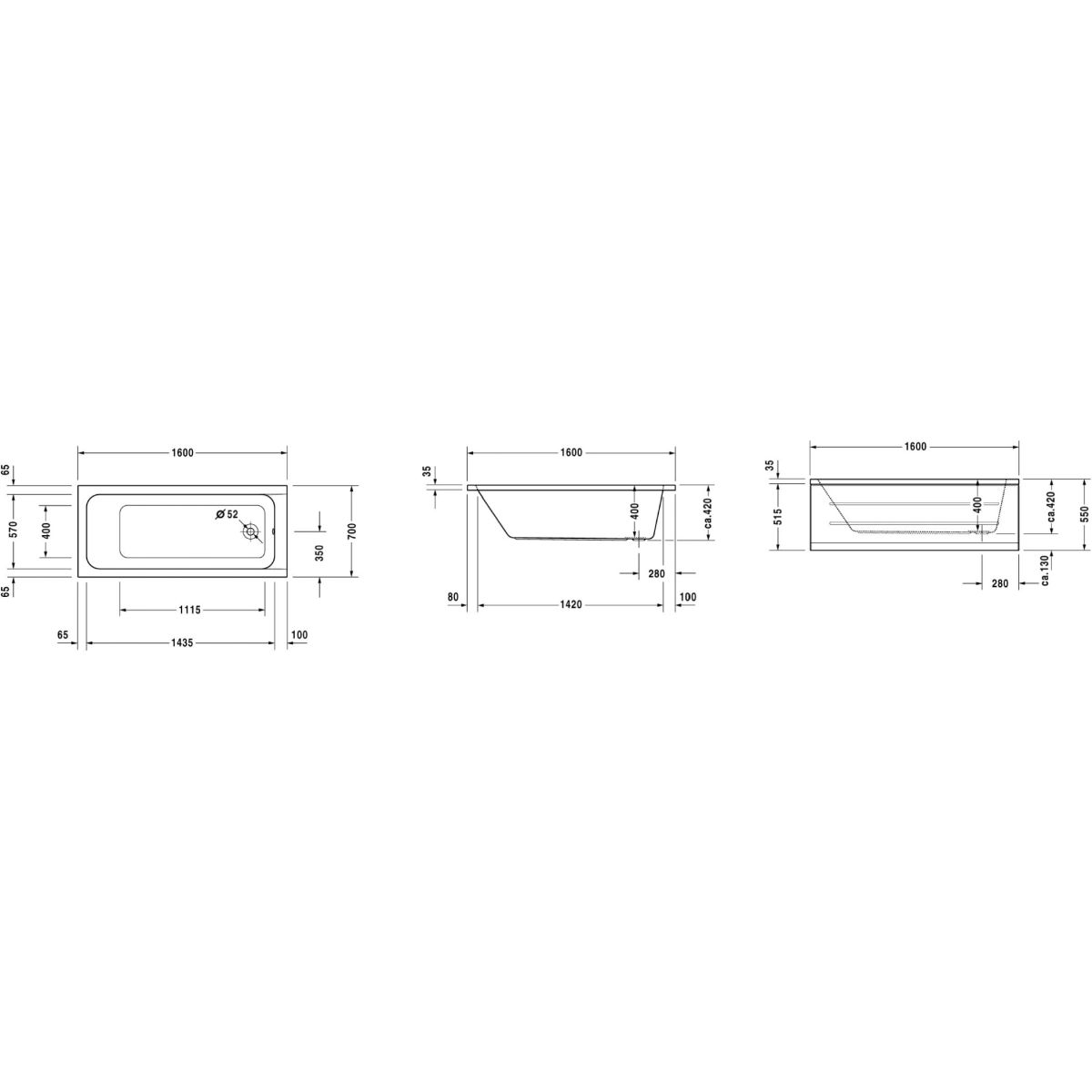 Duravit D-Code Rechteckige Badewanne 160x70 cm weiß 700096000000000