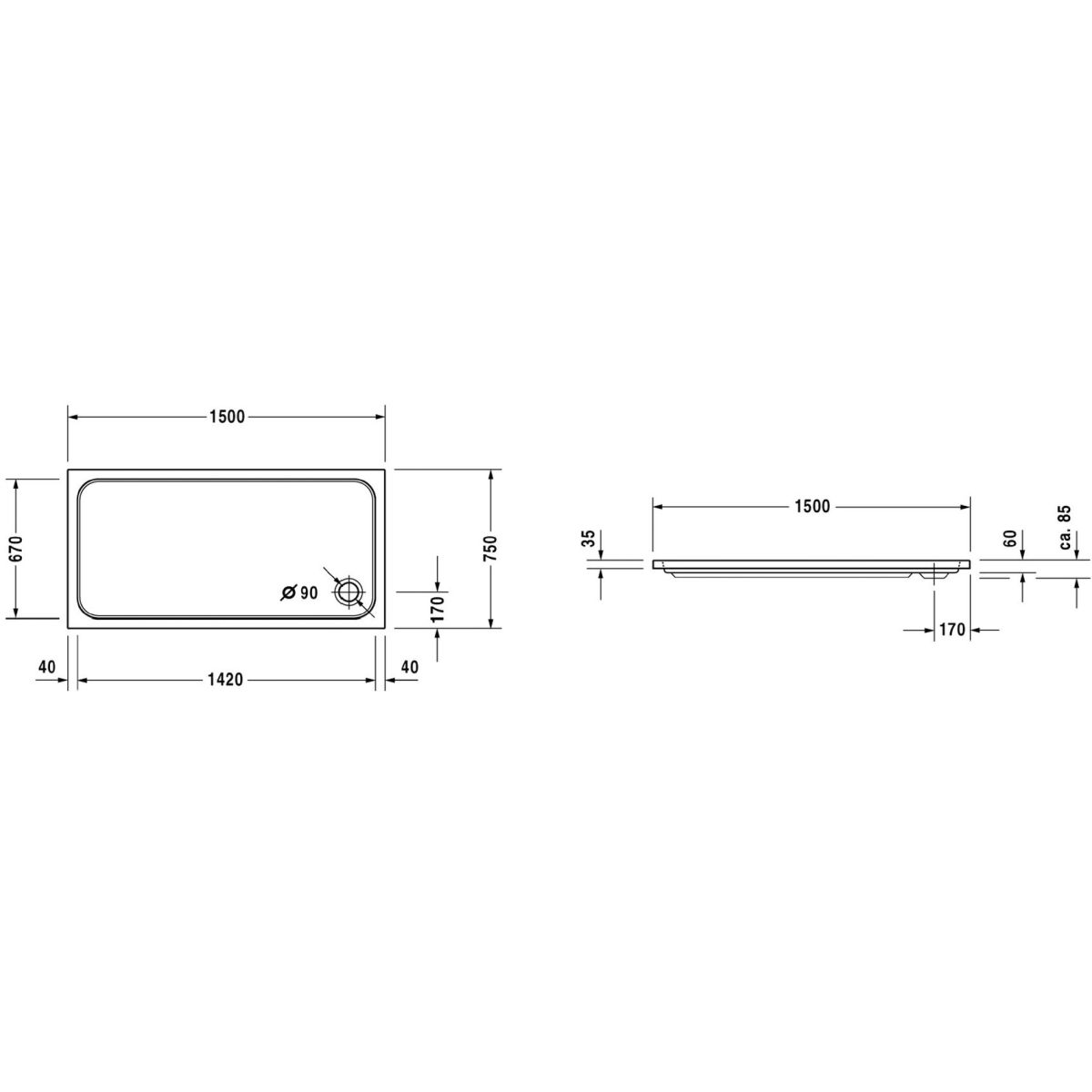 - Abflussdurchmesser: Ø 90 mm