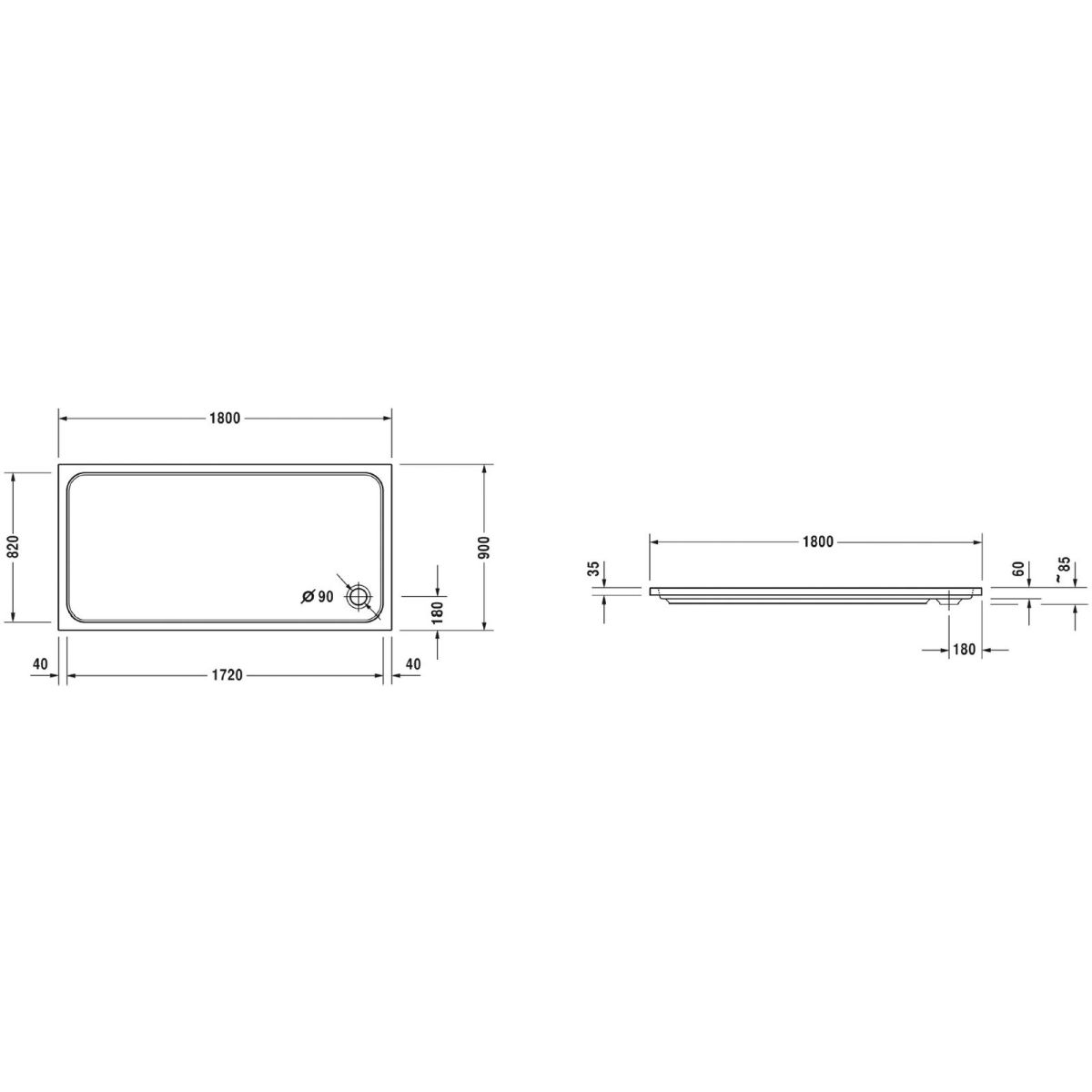 Duravit D-Code Rechteckige Duschwanne 180x90 cm weiß 720165000000000