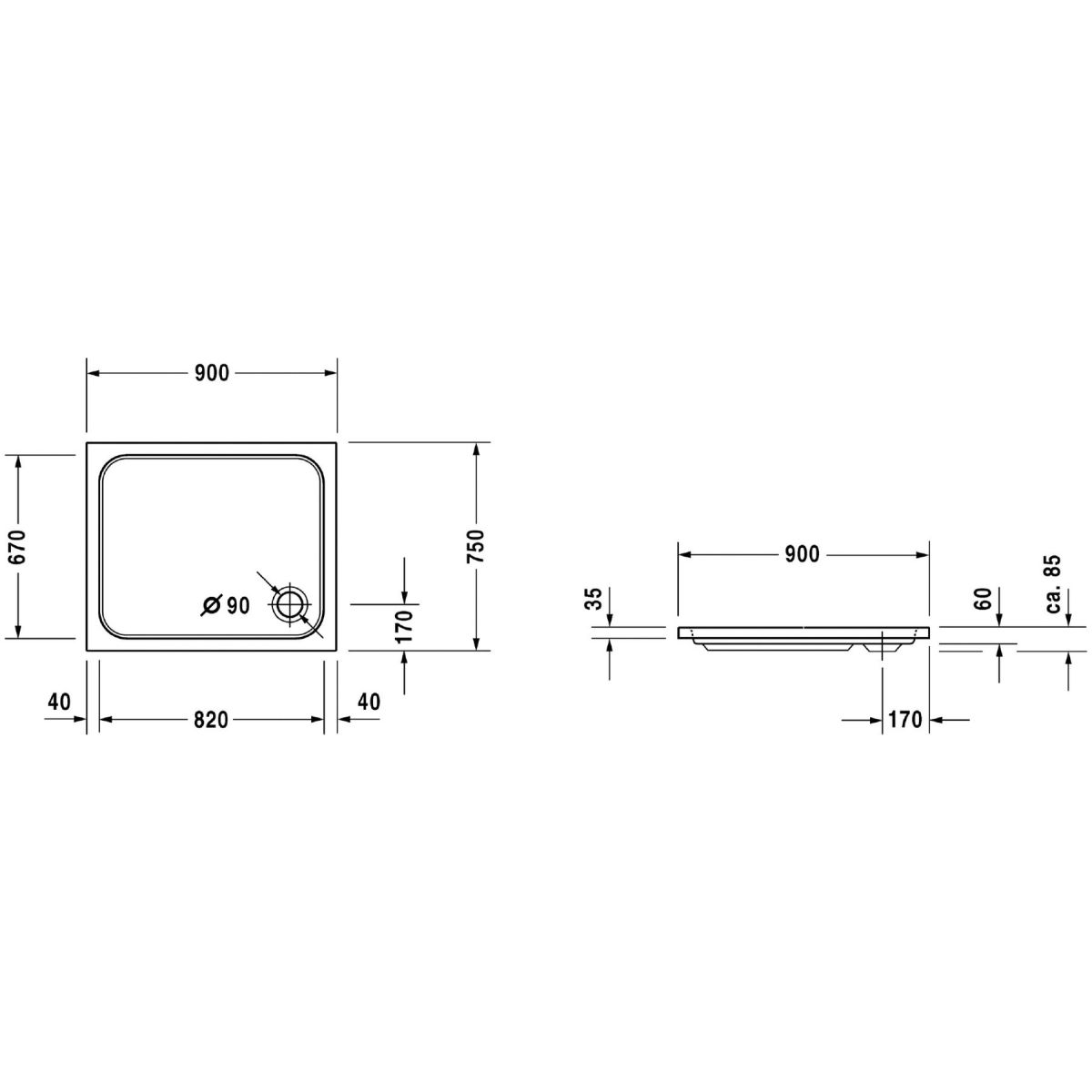 - Abflussdurchmesser: Ø 90 mm