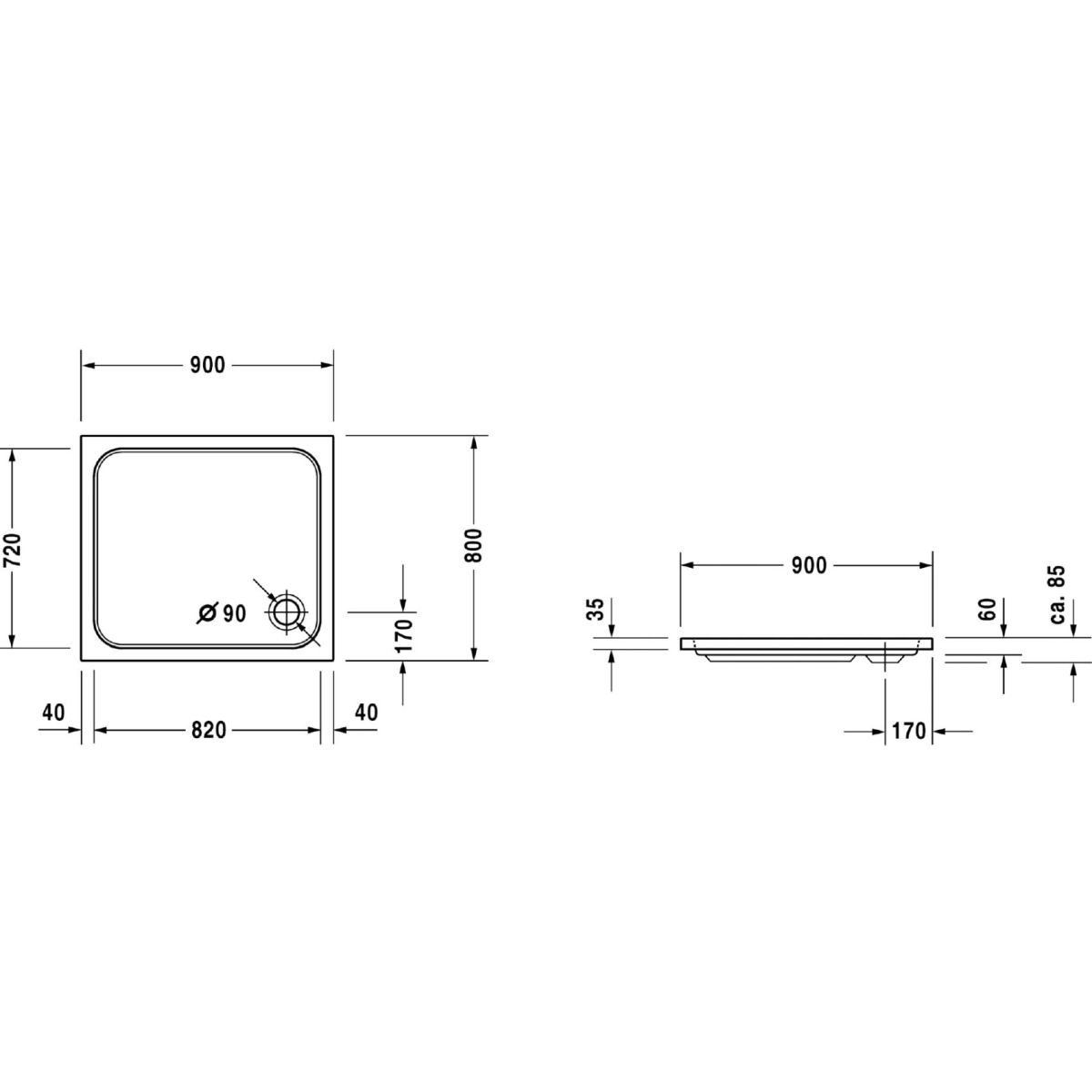 Duravit D-Code Rechteckige Duschwanne 90x80 cm weiß 720105000000001