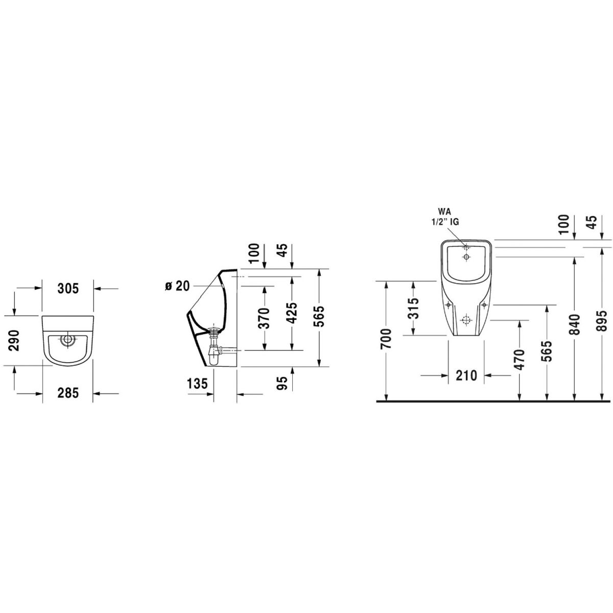 - inklusive Spüldüse, Wasseranschlussset, Ablassventil, Flaschensiphon Ø 32 mm und Befestigung