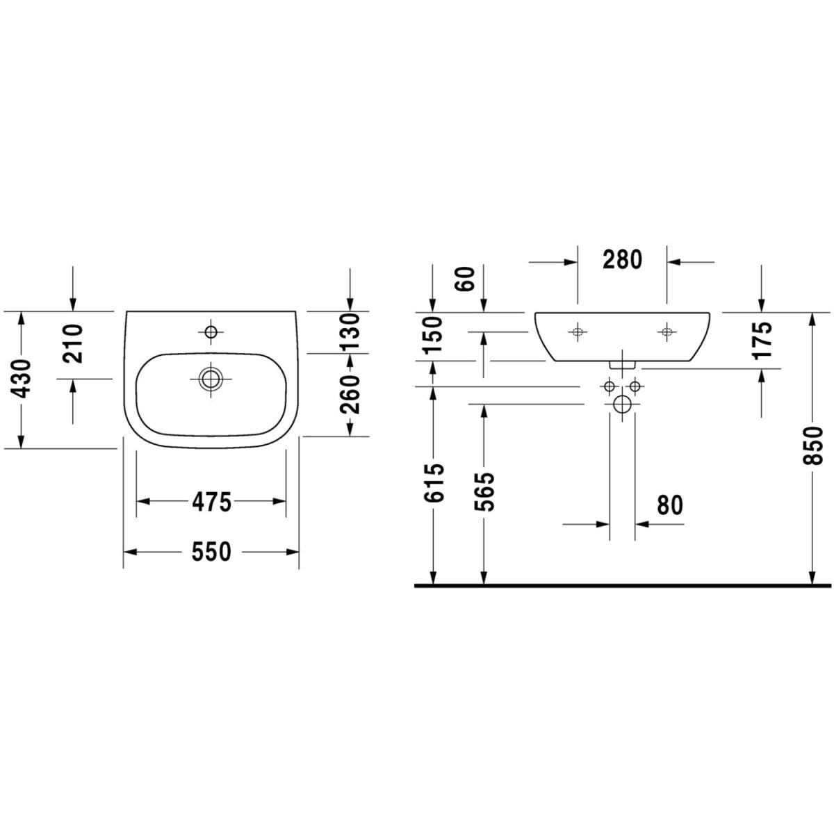 Duravit D-Code Waschbecken 55x43 cm halbrund Klassisch weiß 23115500002