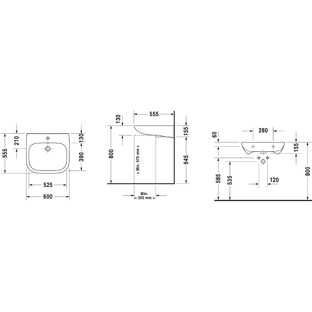 Duravit D-Code Waschbecken 60x55.5 cm rechteckig Klassisch für Behinderte weiß 23126000002