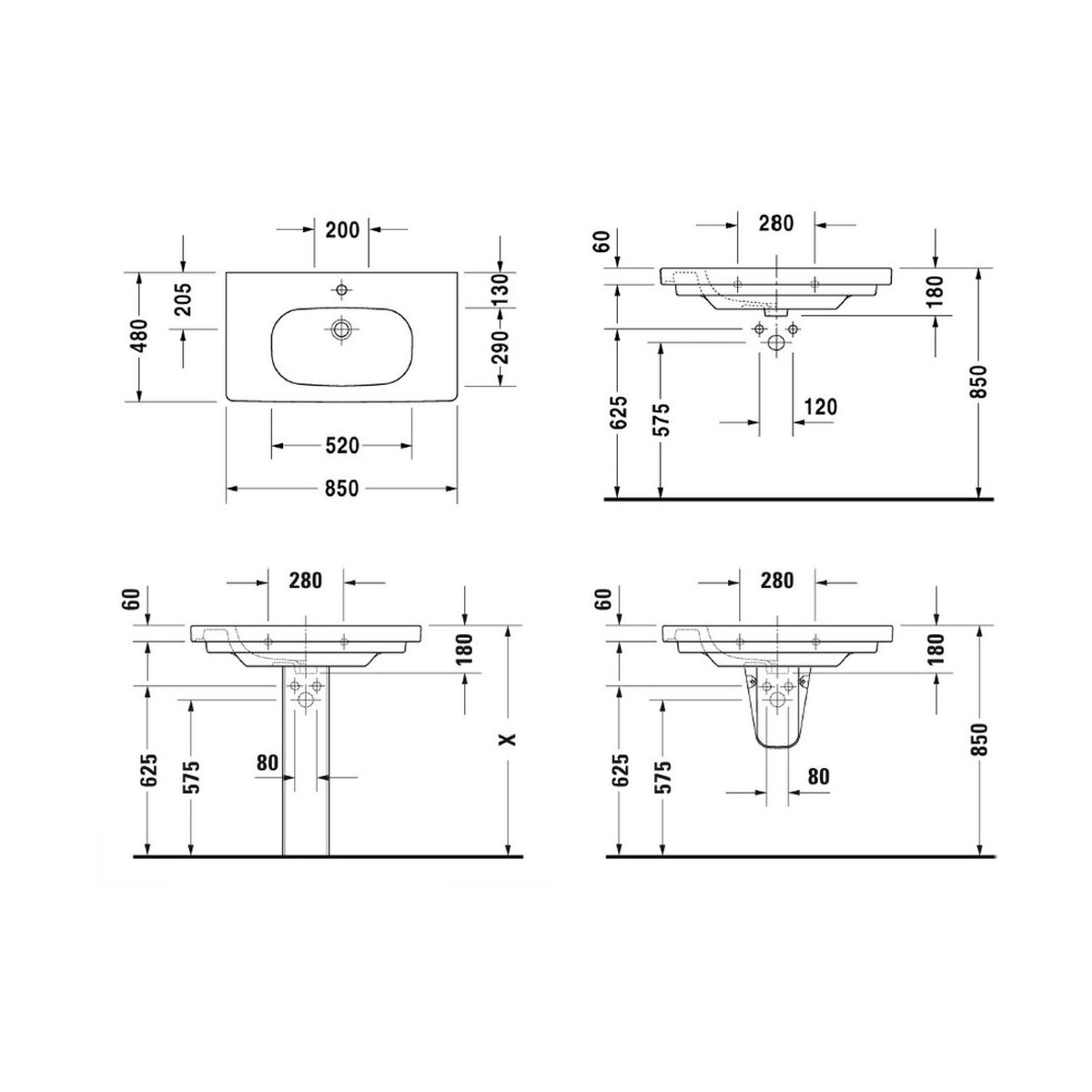 Duravit D-Code Waschbecken 85x48 cm rechteckig Klassisch-Möbel-mit Blatt weiß 03428500002