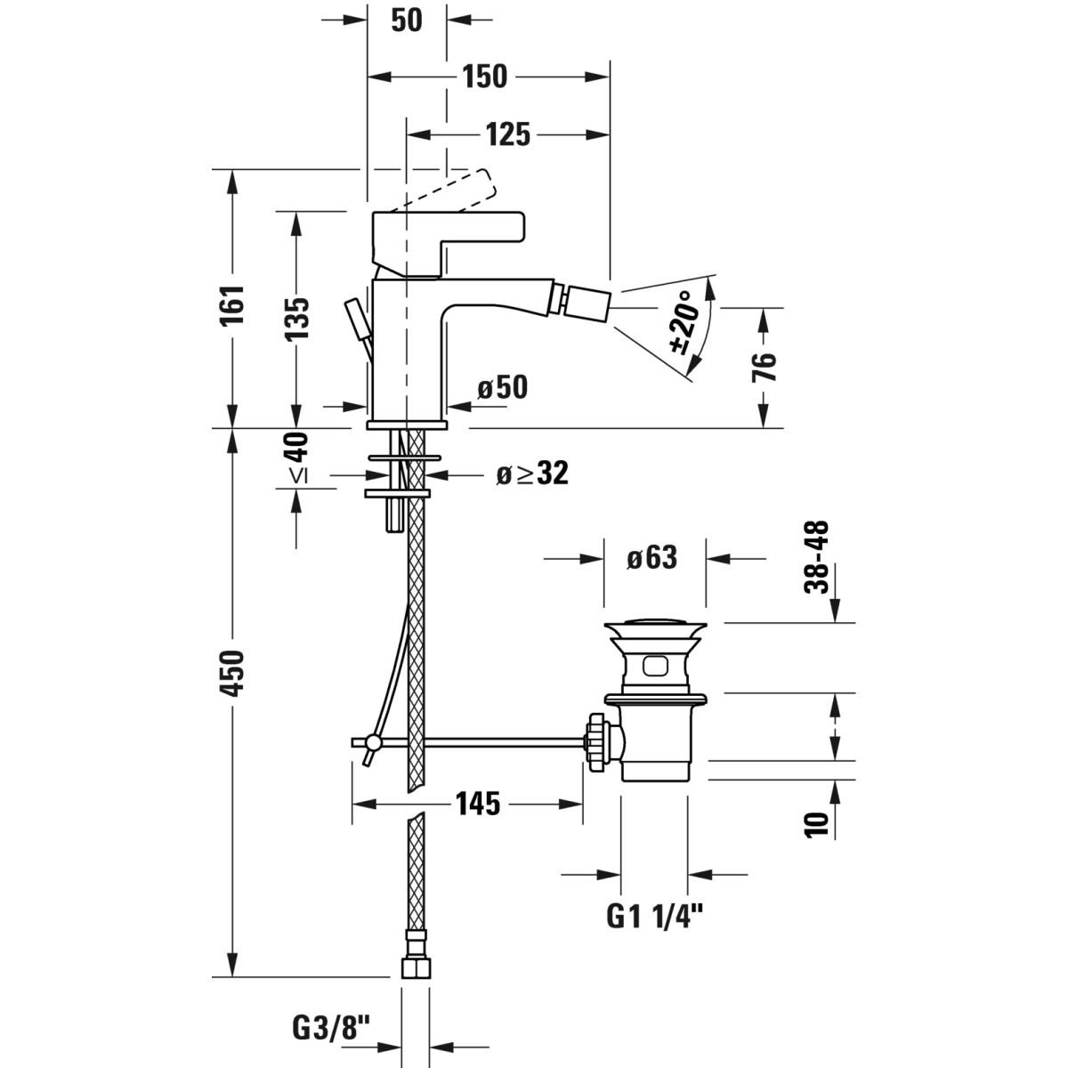 Duravit D-Neo Bidet-Wasserhahn stehend chrom DE2400001010