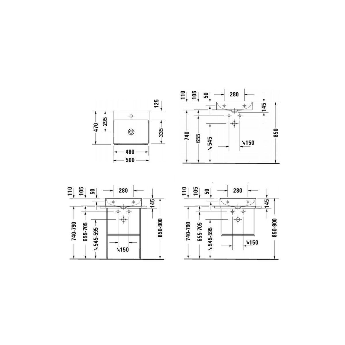 Duravit DuraSquare Waschbecken 50x47 cm rechteckig Klassisch-Möbel weiß 2353500070