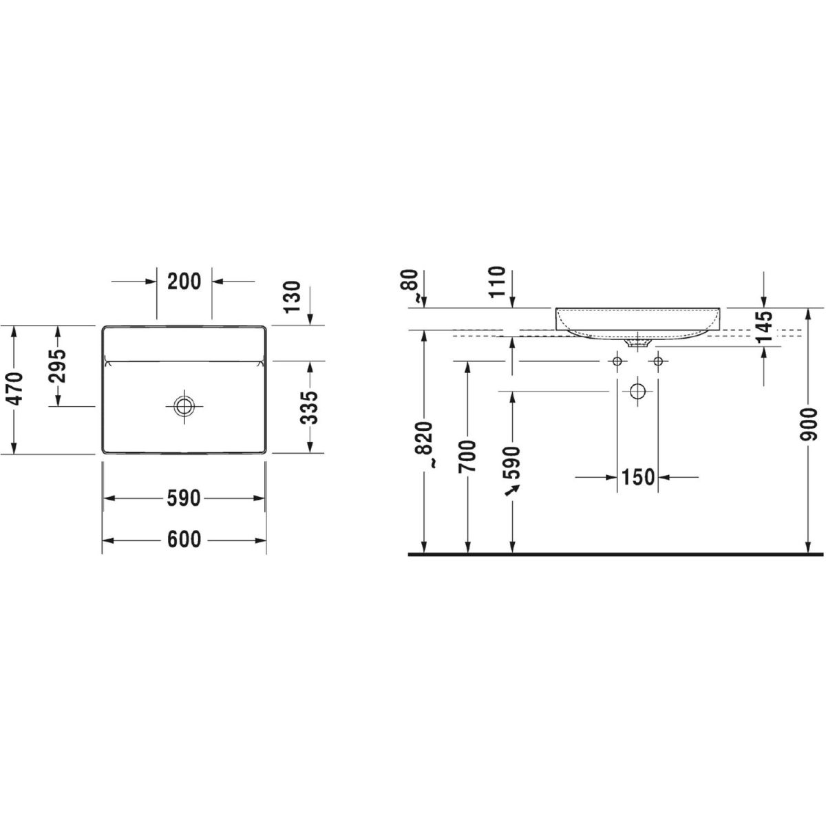Duravit DuraSquare Waschbecken 60x47 cm rechteckig Aufsatzwaschbecken weiß 2354600070