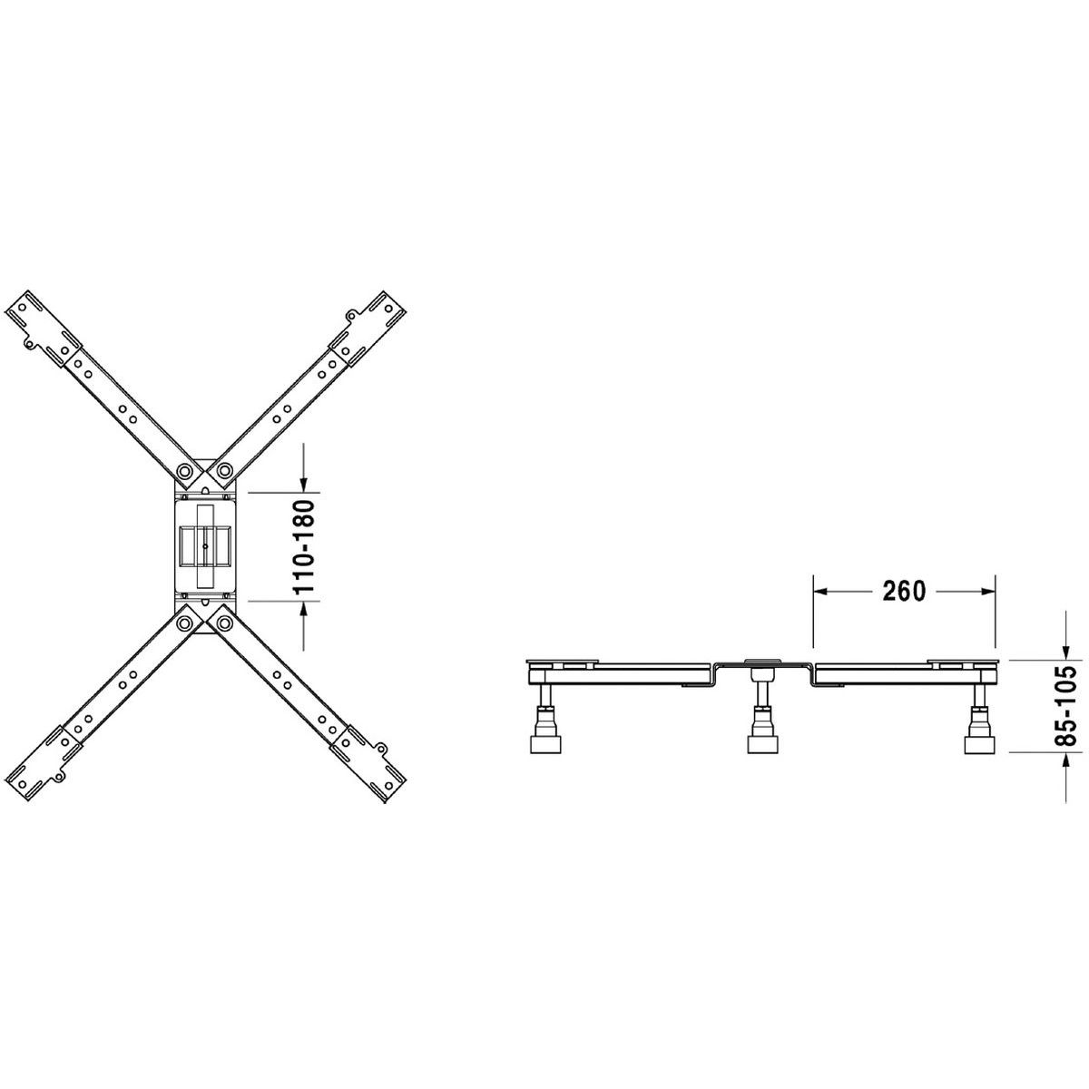 - höhenverstellbar 8,5 - 10,5 cm, wenn ein Geräuschdämpfungsset für Duschwannen verwendet wurde