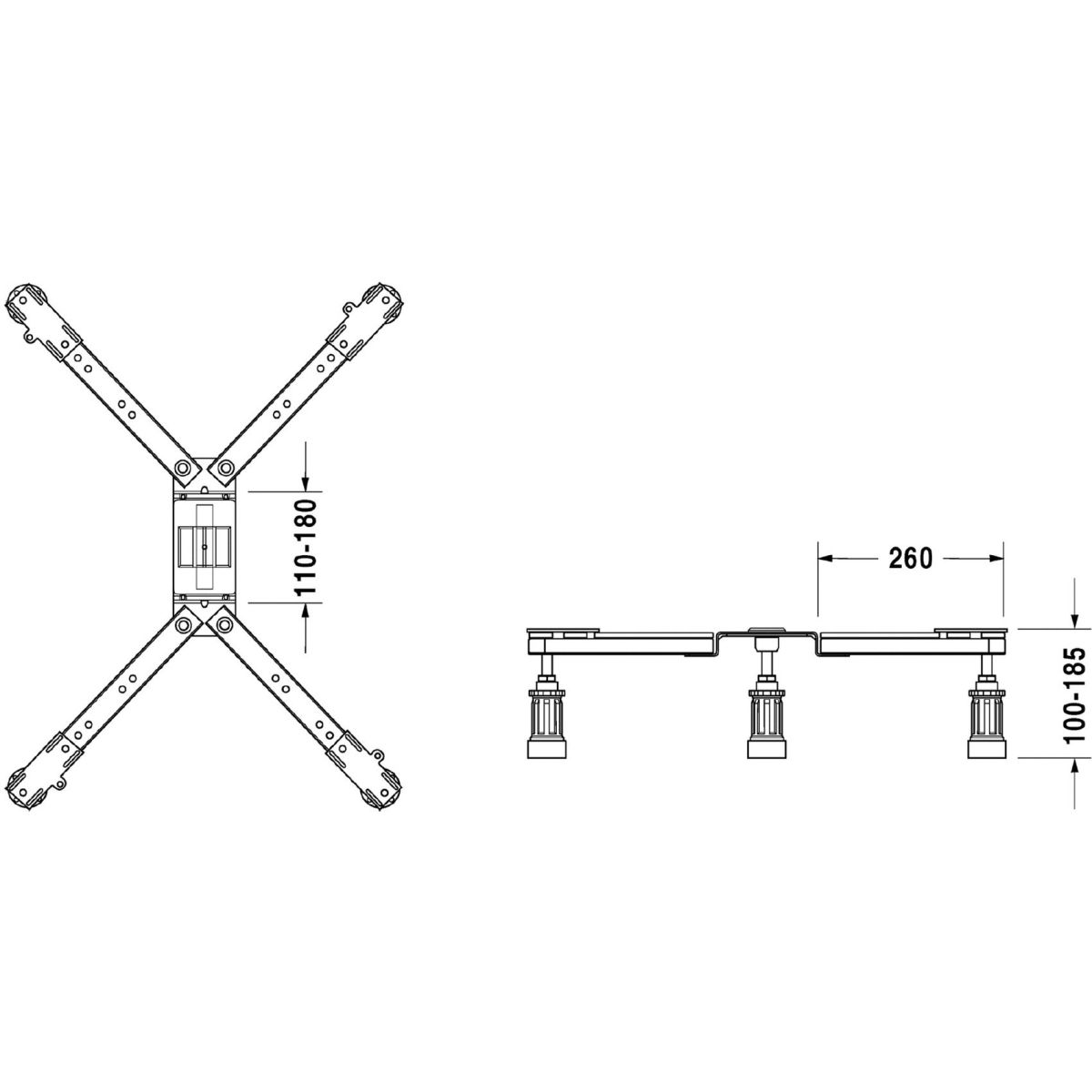 - Höhe einstellbar von 12 bis 15 cm, wenn ein Geräuschdämpfungsset für Duschwannen verwendet wurde