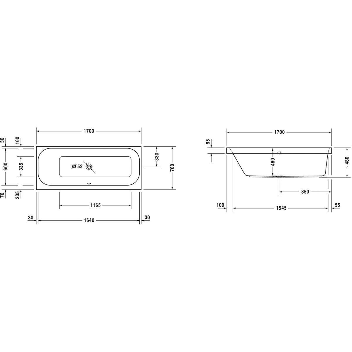 Duravit Happy D.2 Rechteckige Badewanne 170x70 cm weiß 700310000000000