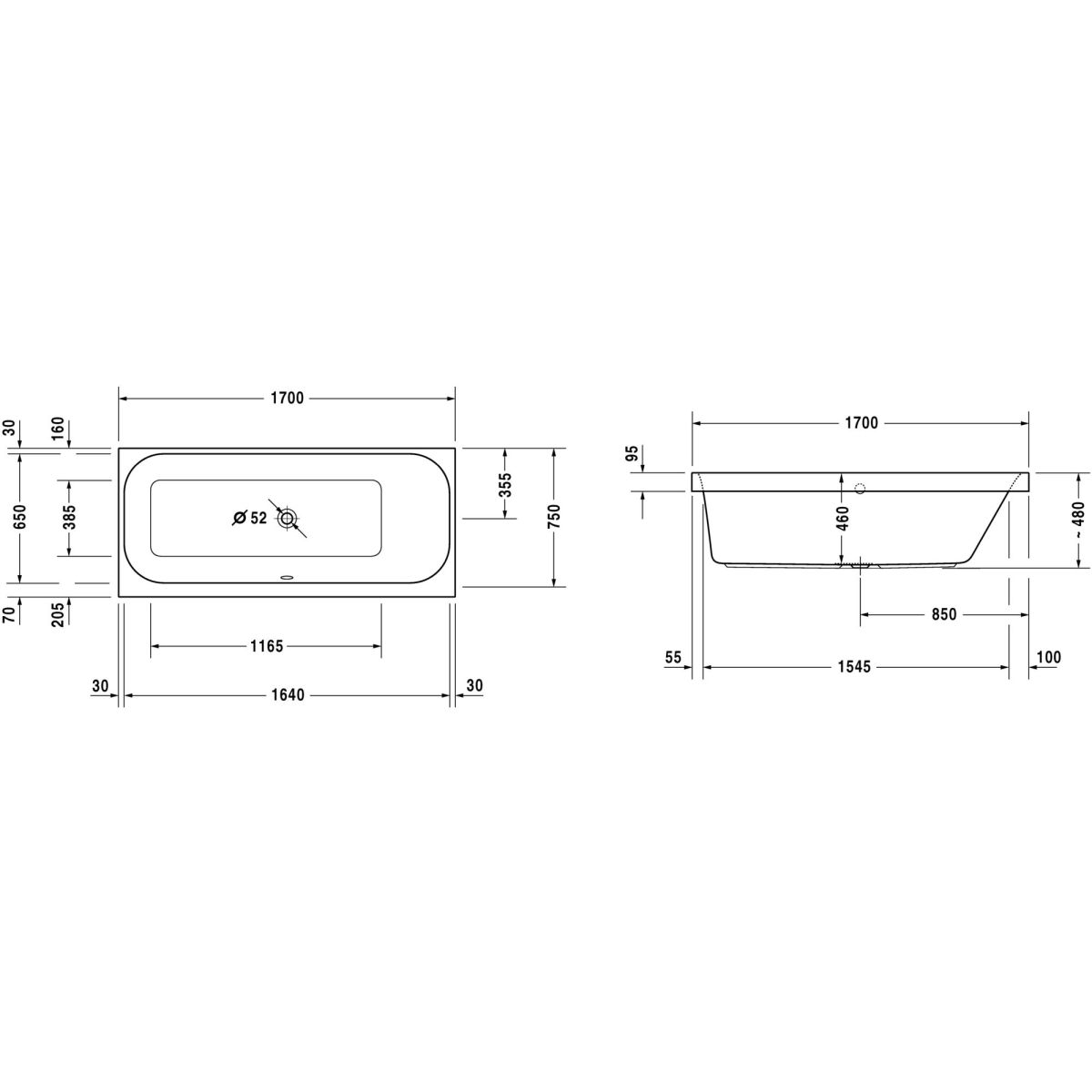 Duravit Happy D.2 Rechteckige Badewanne 170x75 cm weiß 700313000000000