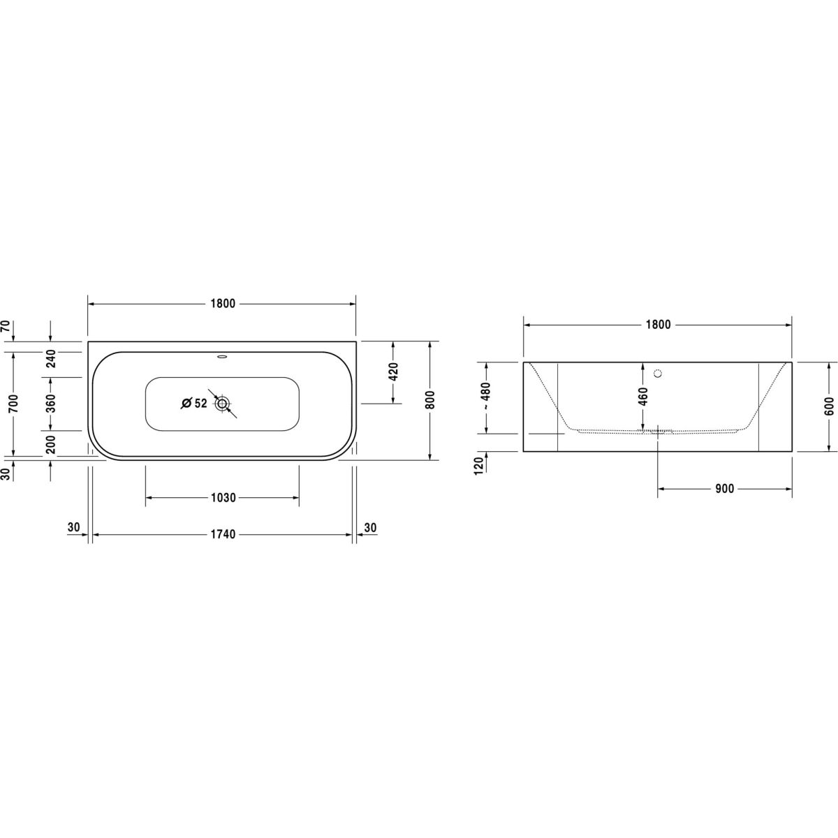 Duravit Happy D.2 Wandmontierte Badewanne 180x80 cm rechteckig weiß 700318000000000