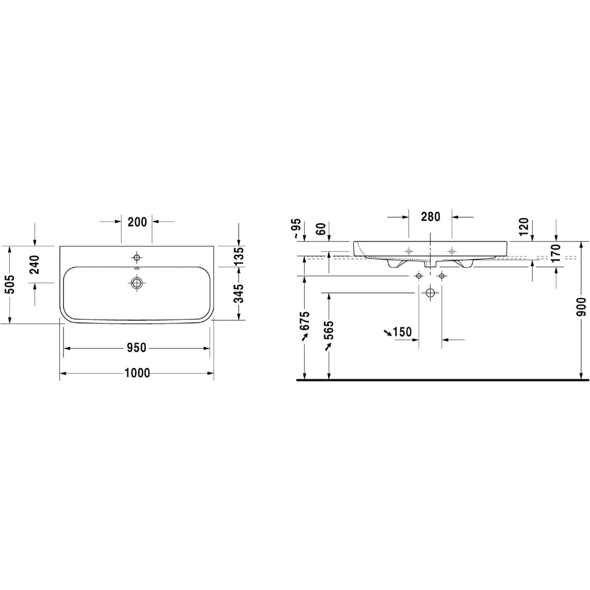 Duravit Happy D.2 Waschbecken 100x50.5 cm rechteckig Klassisch-Möbel weiß 2318100027