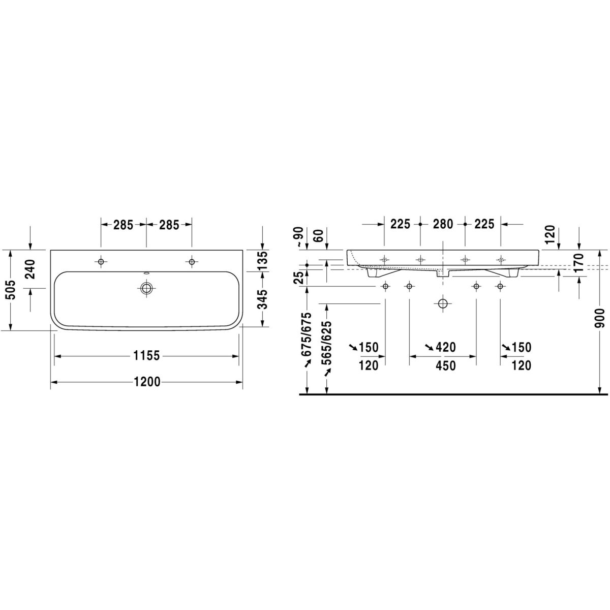 Duravit Happy D.2 Waschbecken 120x50.5 cm rechteckig Klassisch-Möbel weiß 2318120026