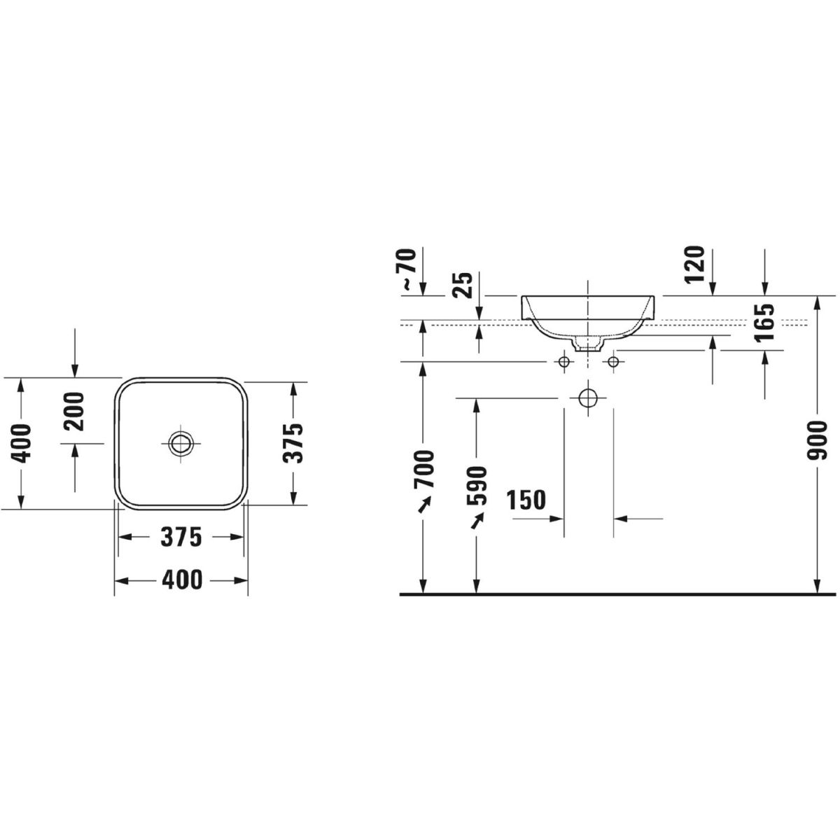 Duravit Happy D.2 Waschbecken 40x40 cm quadratisch Aufsatzwaschbecken weiß 2359400000