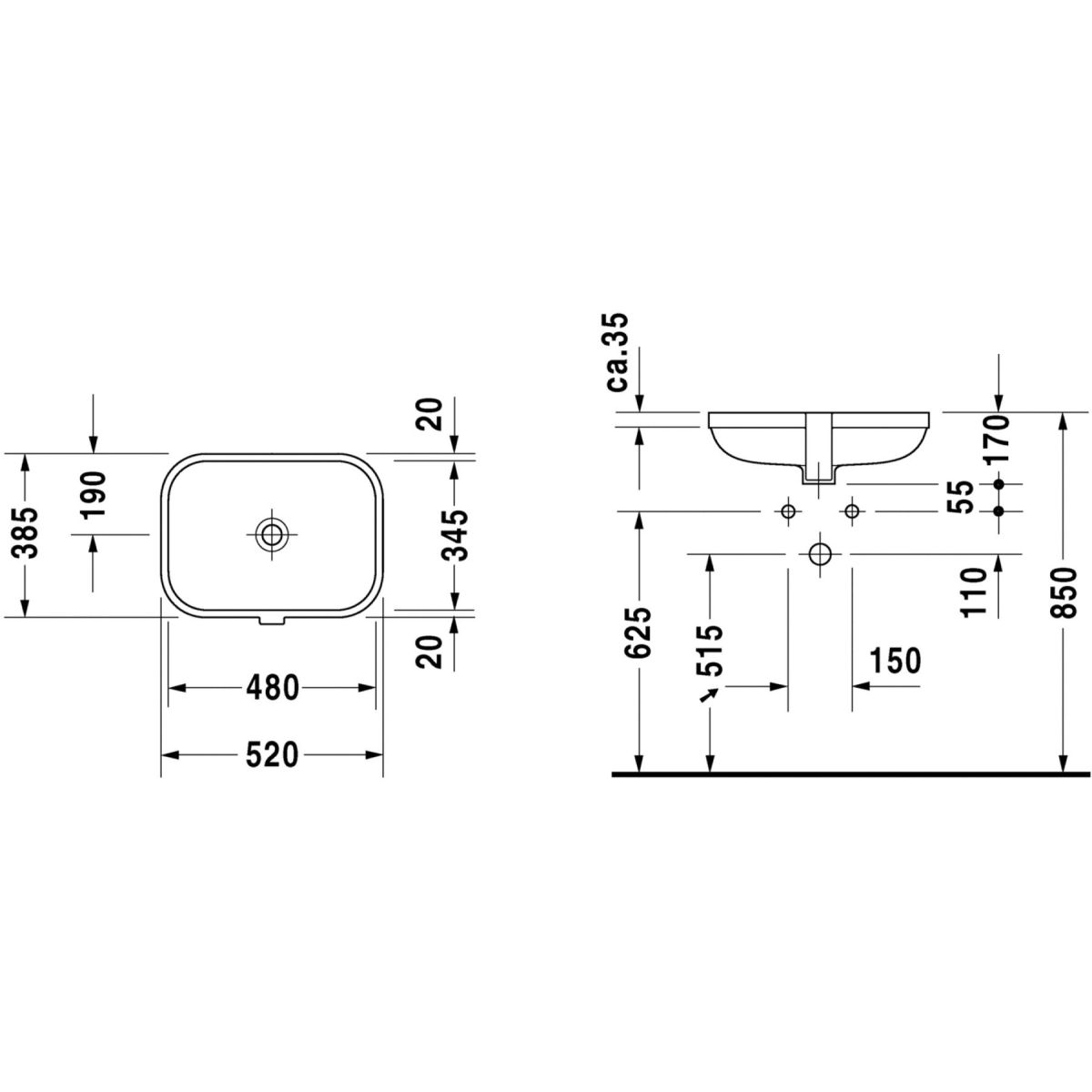 Duravit Happy D.2 Waschbecken 48x34.5 cm rechteckig Unterbauwaschbecken weiß 0457480000